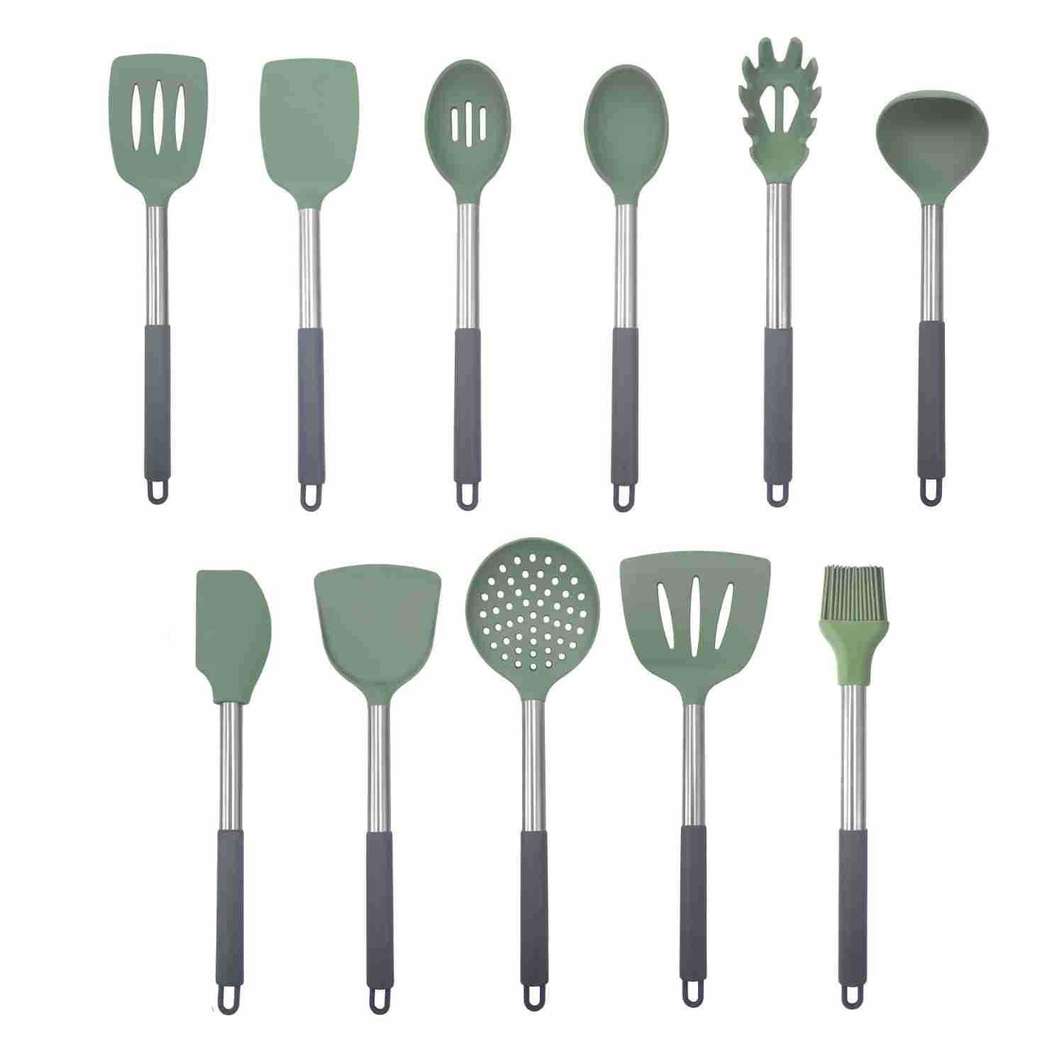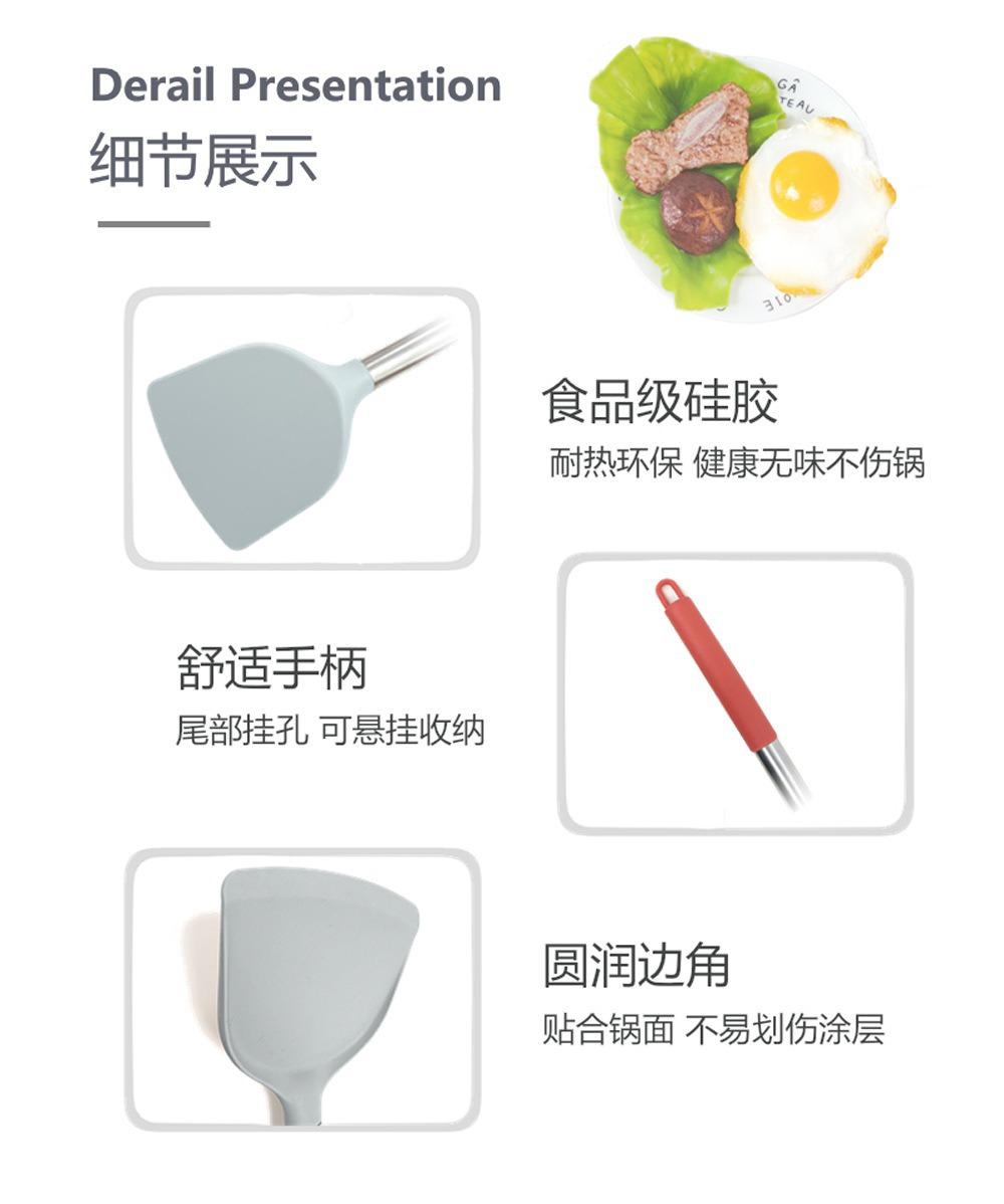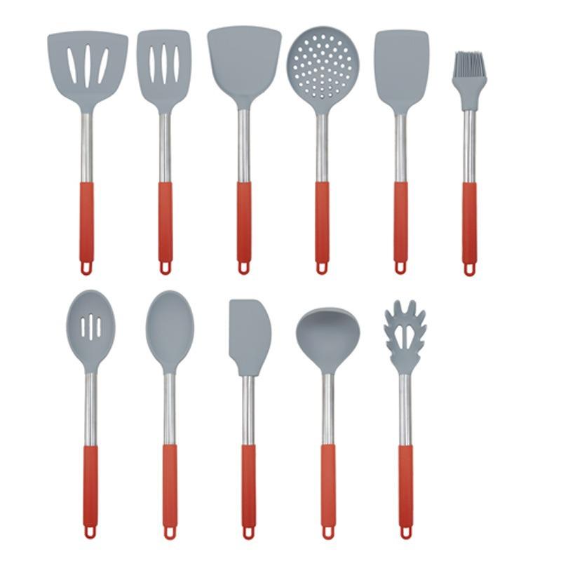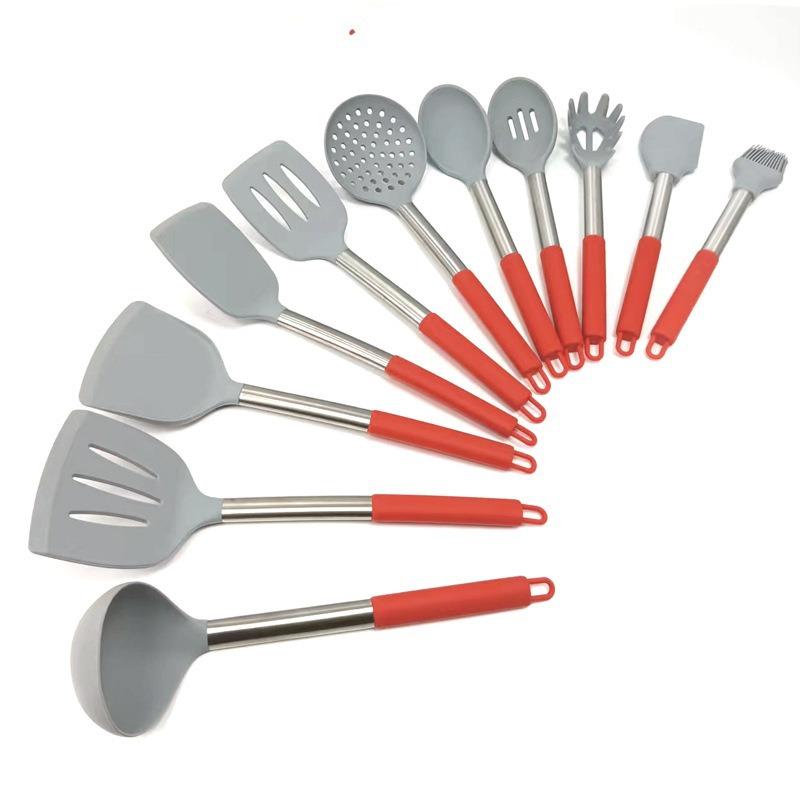 Sartén antiadherente resistente a altas temperaturas espátula para cocinar cuchara para sopa cucharón mango con funda de plástico de silicona juego de utensilios de cocina herramientas para cocinar