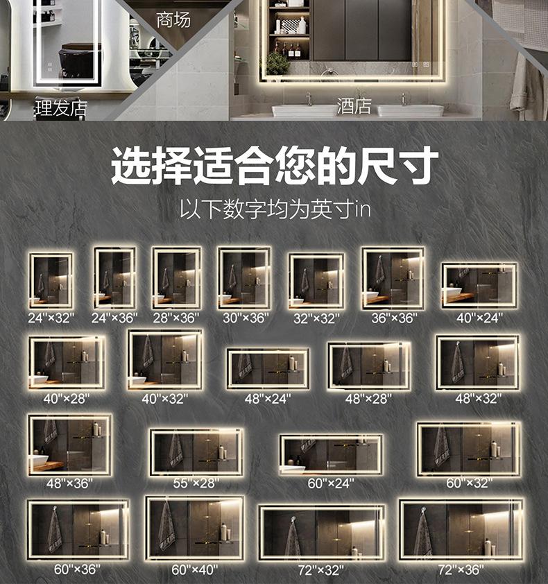 Espejo LED de Hotel para Baño Espejo Inteligente de Alta Definición Montado en la Pared para Baño Pantalla Táctil Tamaño Grande Espejo Antivaho Retroiluminación Tricolor