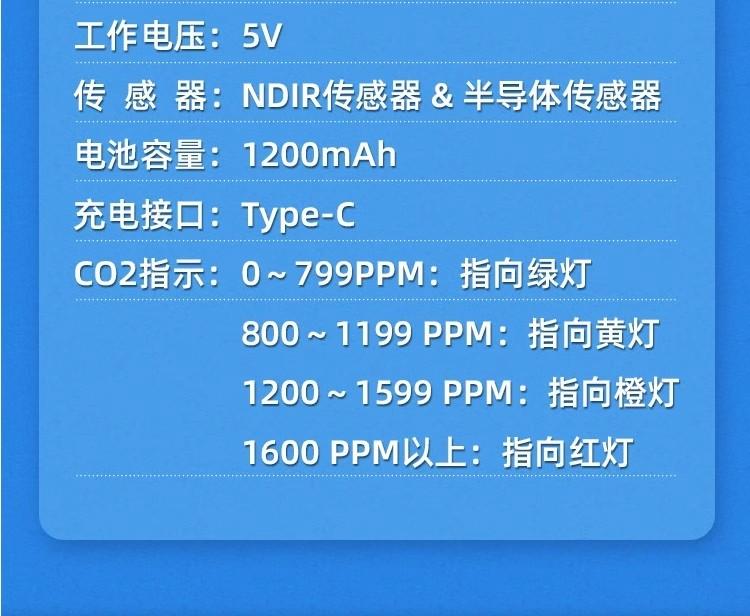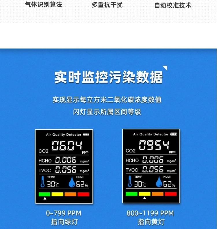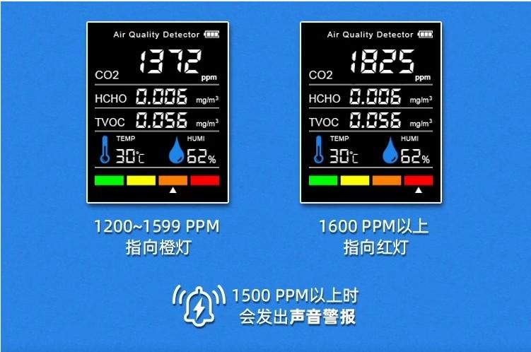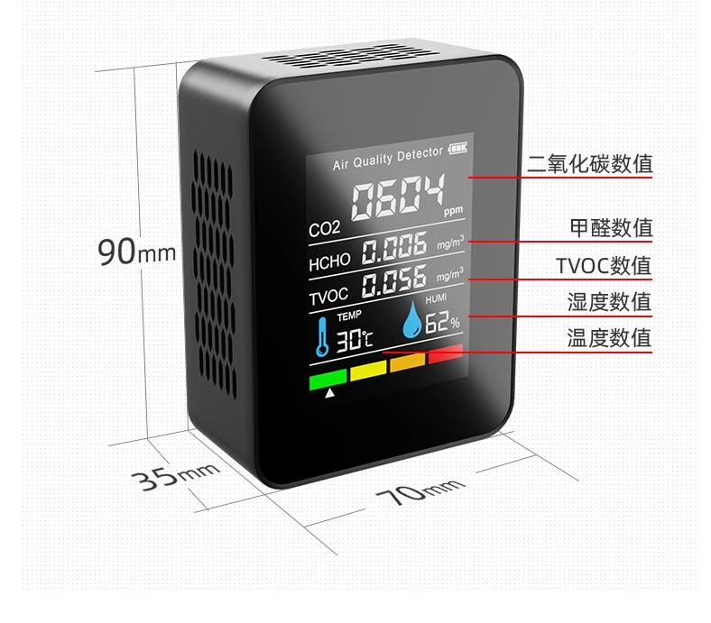 Detector de Dióxido de Carbono Sensor Detector Infrarrojo de CO2 Portátil Monitor de Calidad del Aire Temperatura Humedad