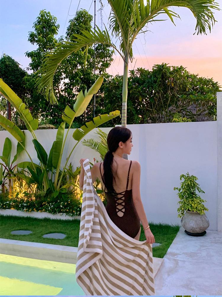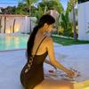 Versión coreana de traje de baño sin espalda para mujer viento ins traje de baño delgado y ajustado traje de baño de una pieza traje de baño triángulo traje de baño para aguas termales para mujer venta al por mayor
