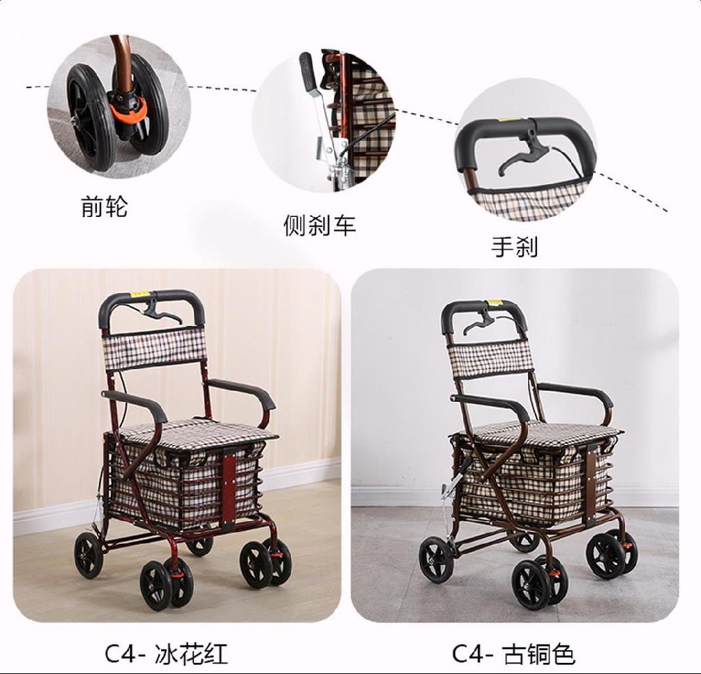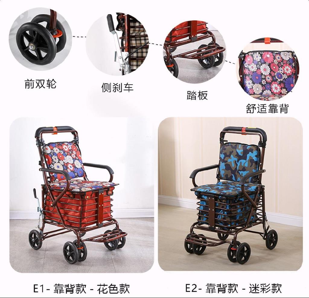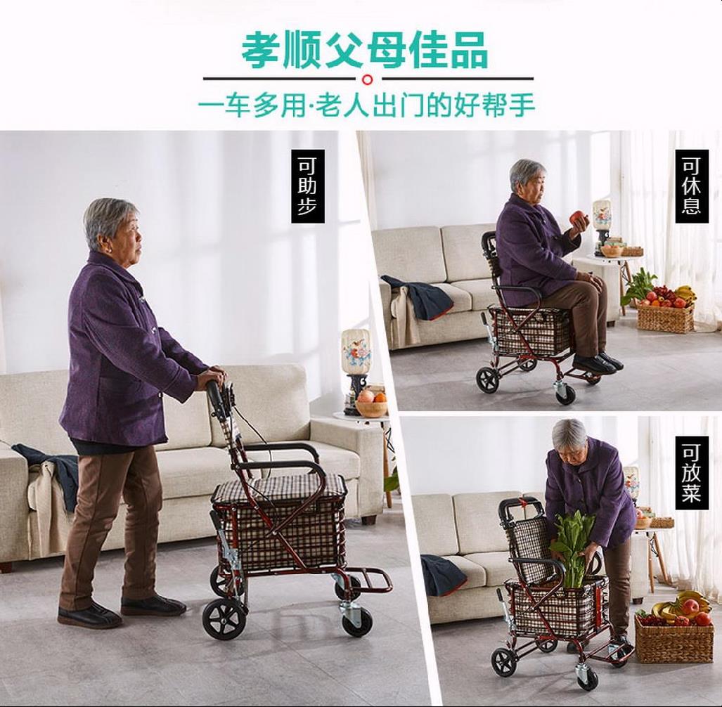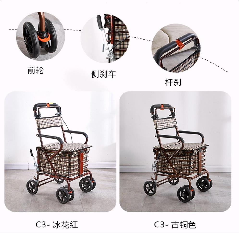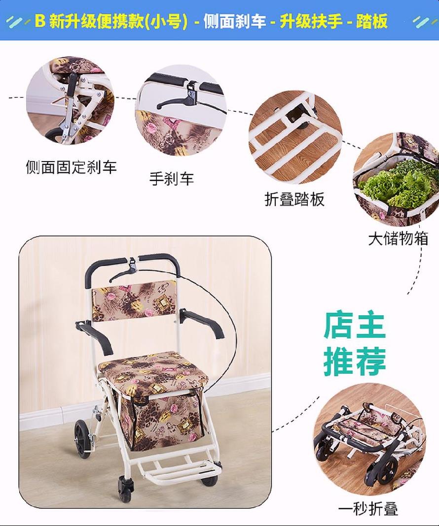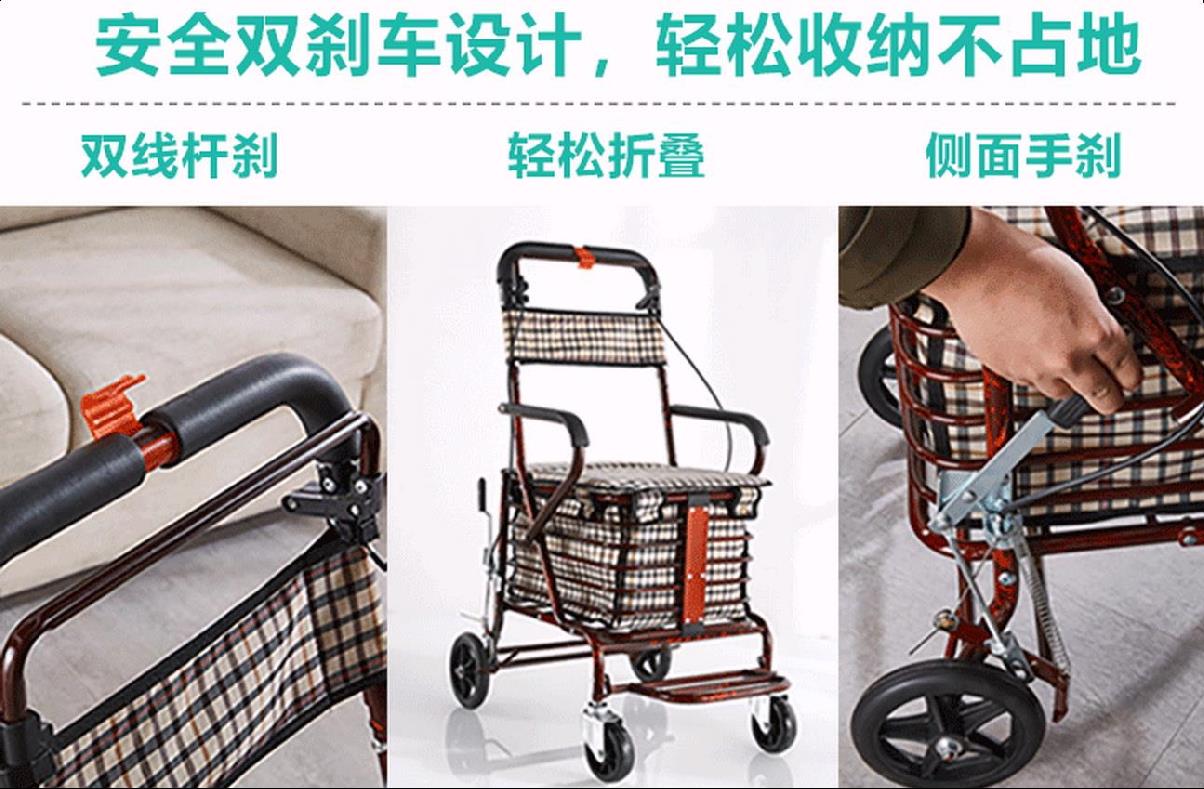 9Qxc Carrito con Ruedas para Ancianos Rueda Universal Carrito con Asiento Asiento Plegable Carrito para Ancianos de Doble Propósito