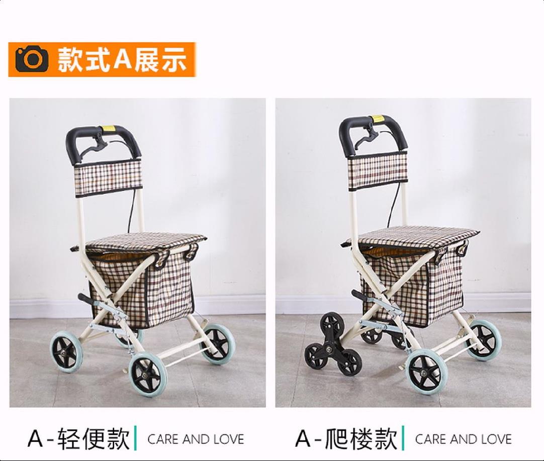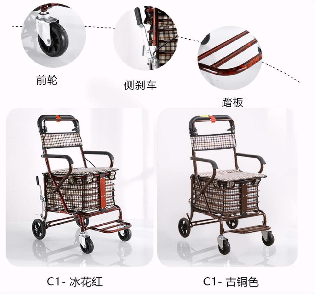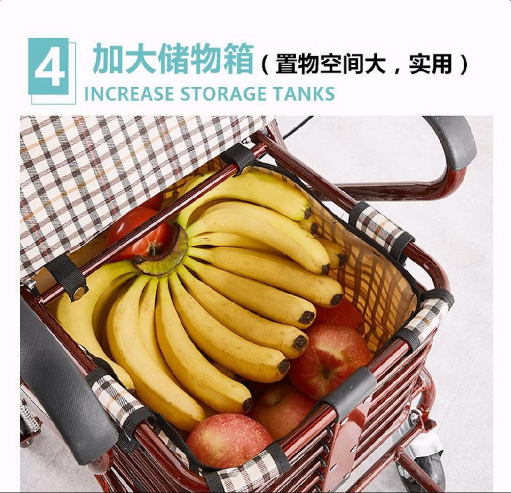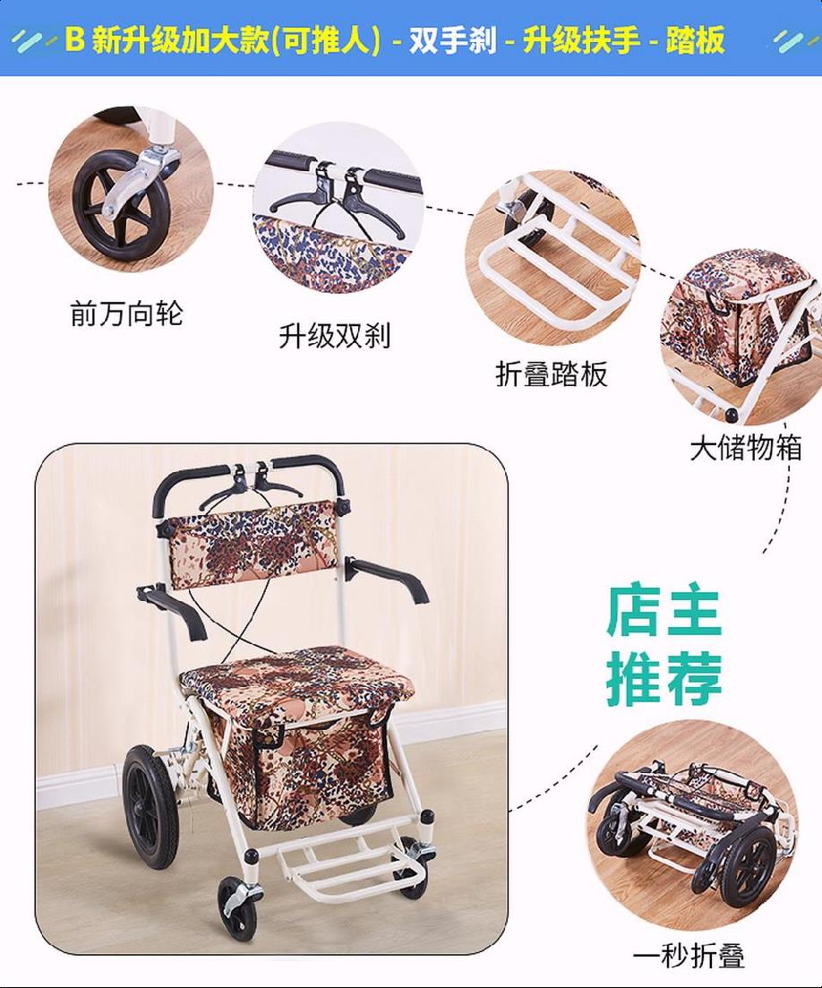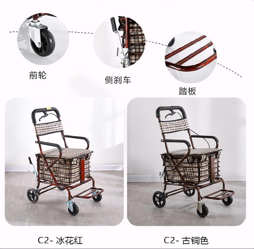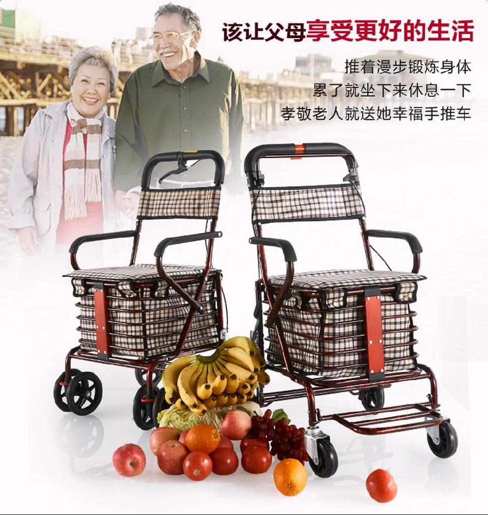 9Qxc Carrito con Ruedas para Ancianos Rueda Universal Carrito con Asiento Asiento Plegable Carrito para Ancianos de Doble Propósito