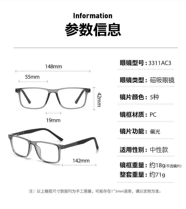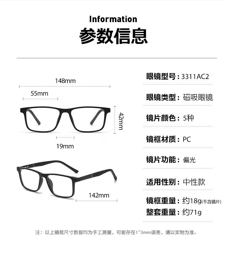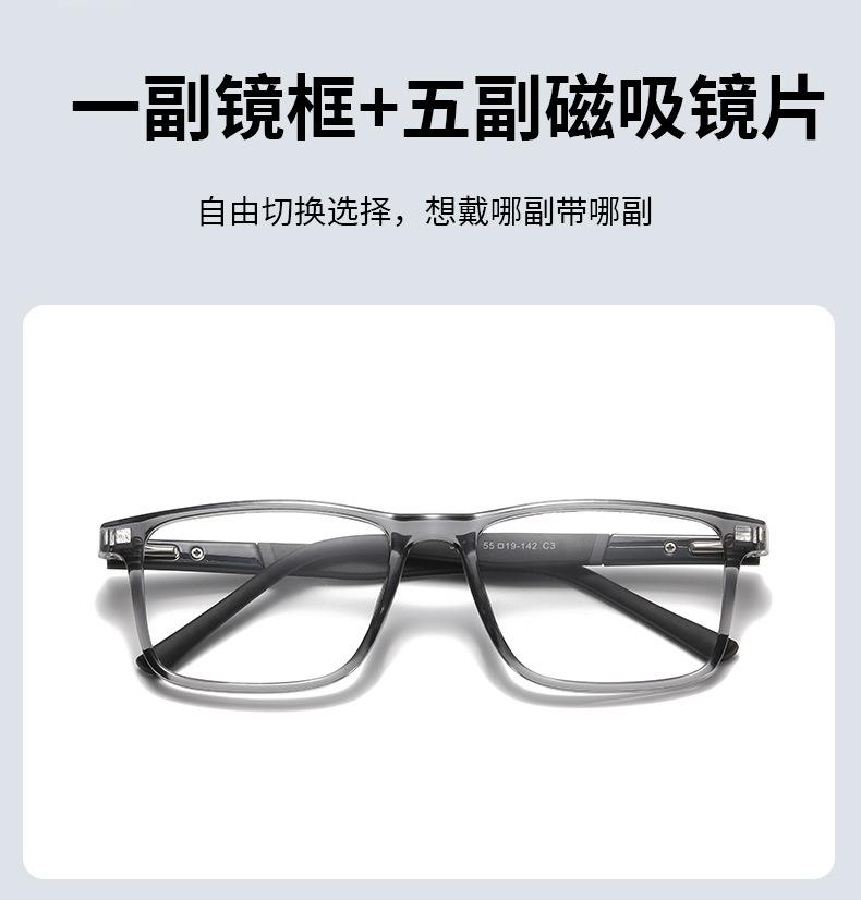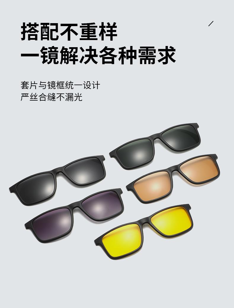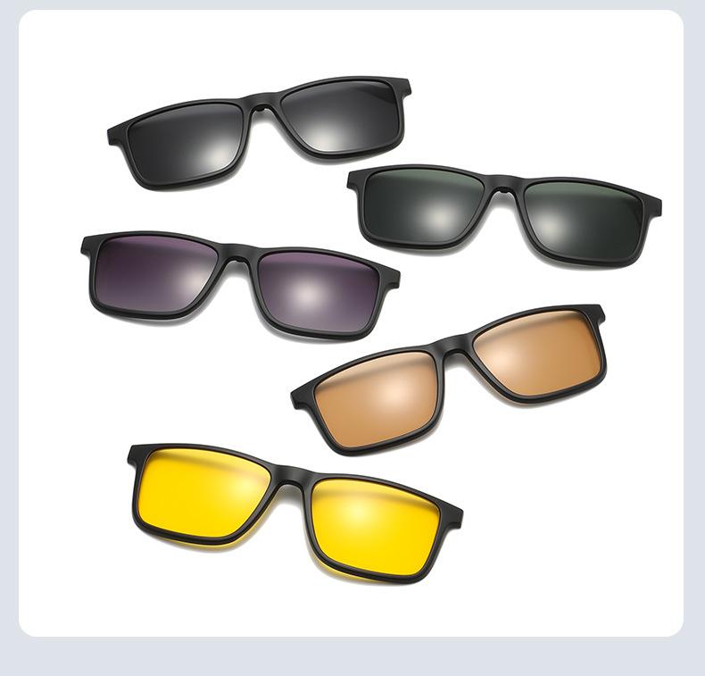 Verano Nuevo Negocio Set Magnético de Gafas Gama Alta Venta al Mayoreo Armazón Cuadrado Pulido Armazón Grande Gafas de Sol Cinco en Uno