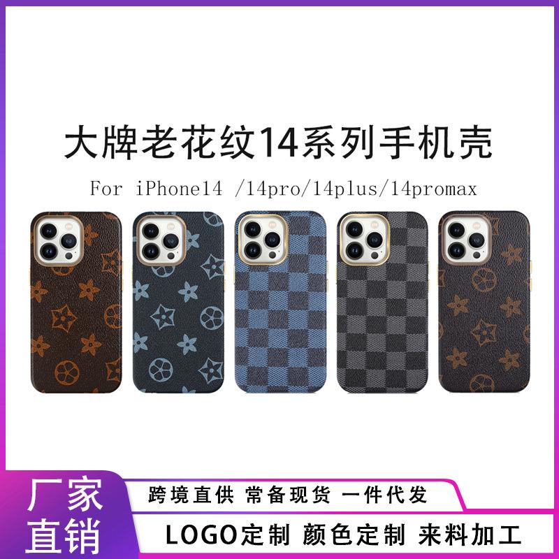 Funda de lujo con patrón antiguo para teléfono móvil de marca grande iphone14 Apple 14promax todo incluido anticaída cubierta protectora de cuero LV