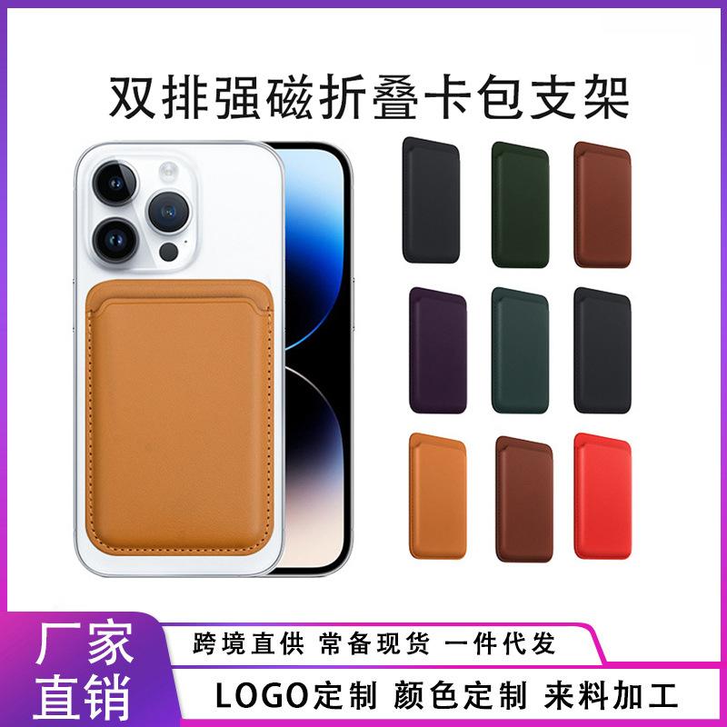 Soporte magnético para tarjetas soporte para teléfono móvil magsafe universal 13 soporte plegable soporte perezoso pegatina trasera de cuero