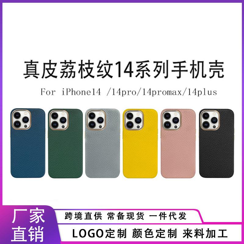 Adecuado para Apple 14 funda de teléfono móvil con patrón de lichi iphone13promax cuero genuino anticaídas cuero piel de vaca funda protectora
