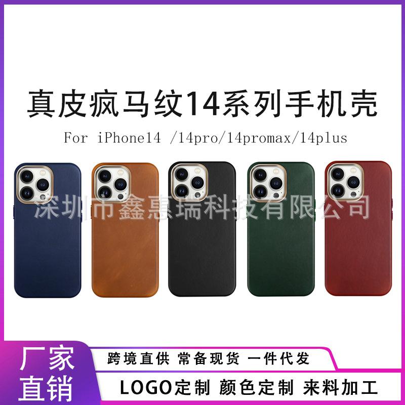 Adecuado para funda de teléfono móvil de cuero genuino Apple 14 Cuero con patrón de caballo loco avanzado iPhone13 piel de vaca cubierta protectora completa fabricante