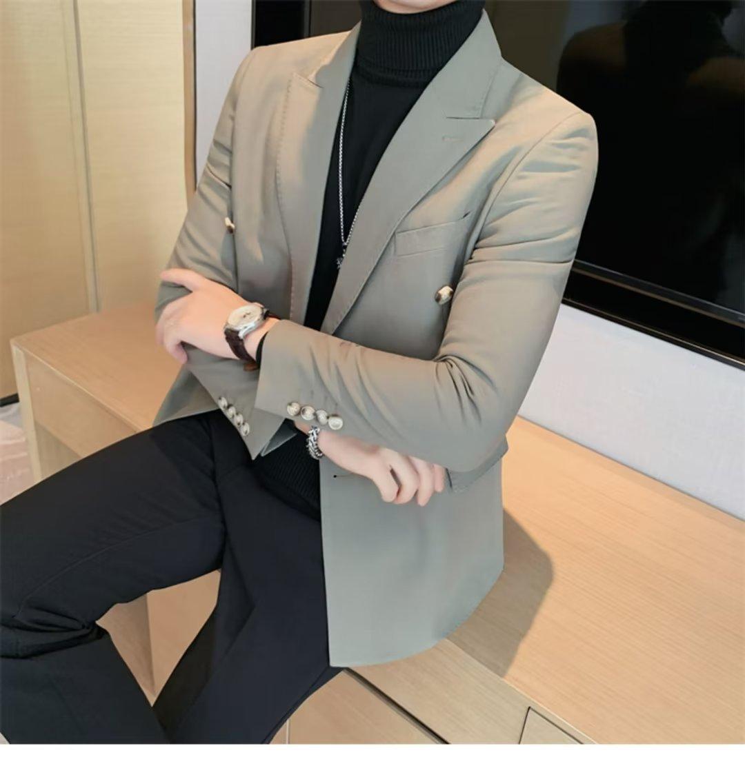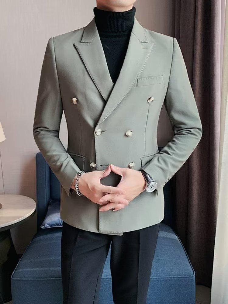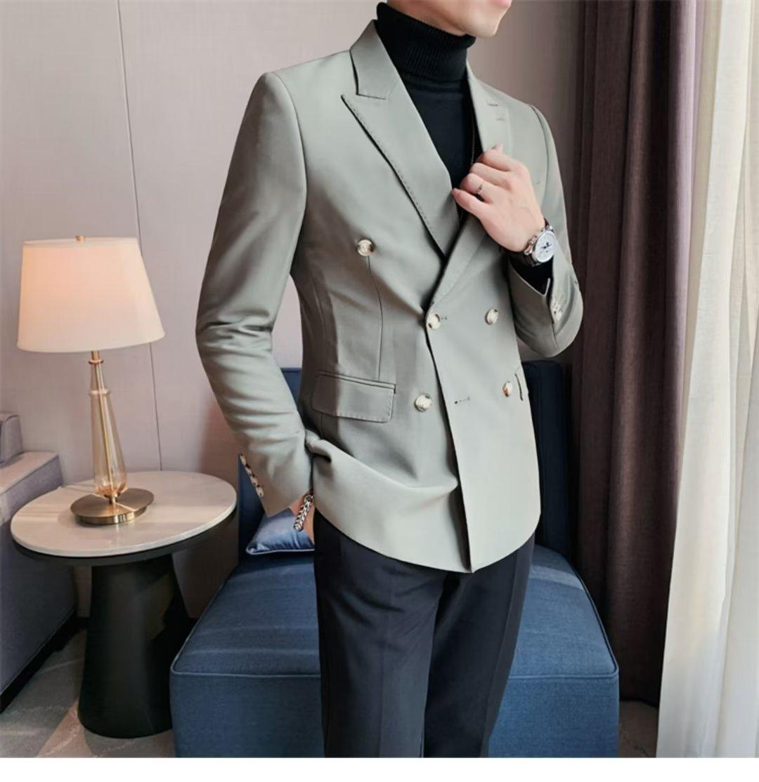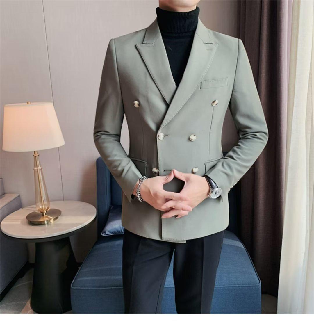 Chaqueta de Traje Casual de Doble Botonadura para Hombre Primavera y Otoño Negocios Británico Traje Único Moderno Slim Traje para Hombre