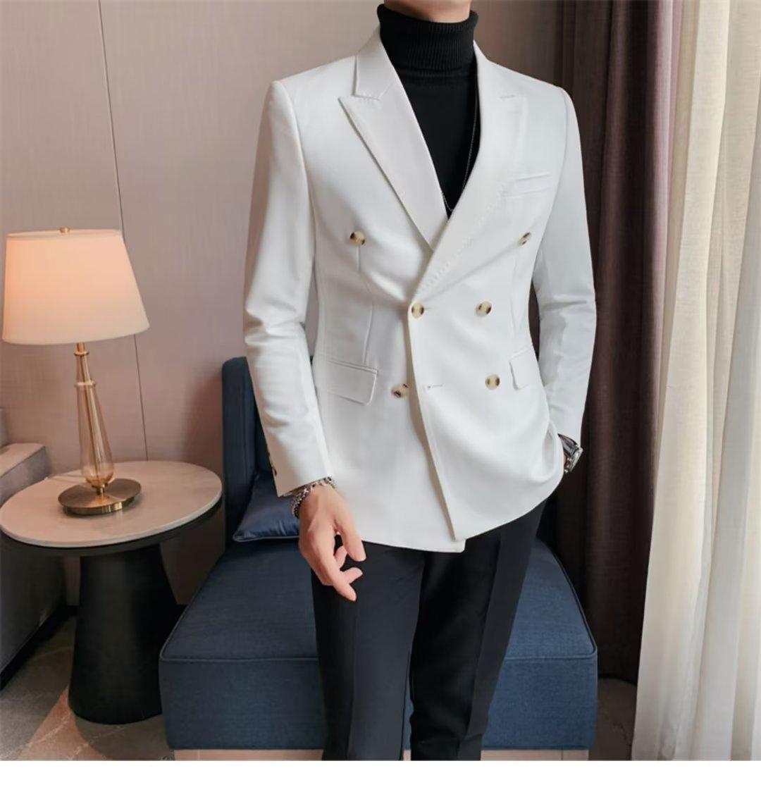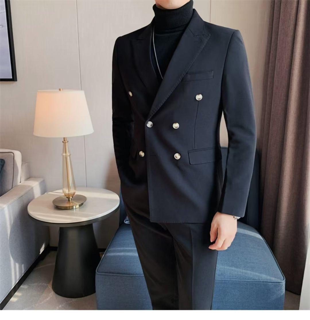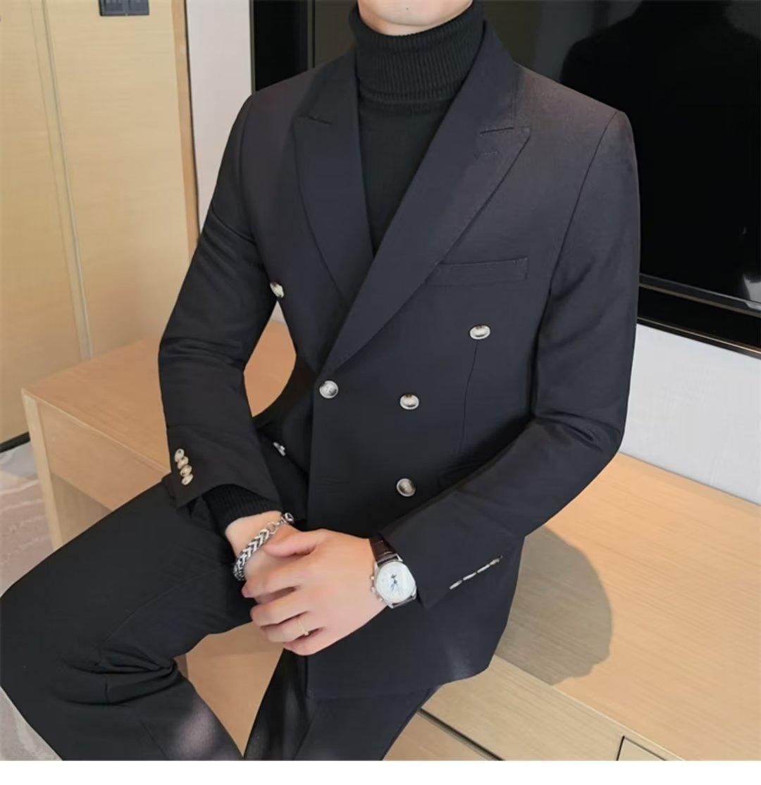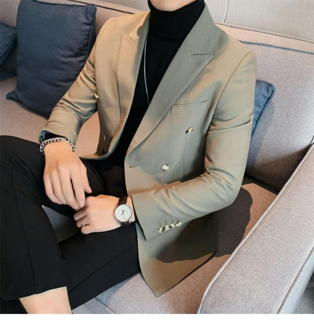 Chaqueta de Traje Casual de Doble Botonadura para Hombre Primavera y Otoño Negocios Británico Traje Único Moderno Slim Traje para Hombre