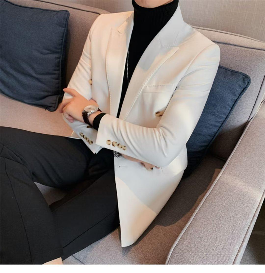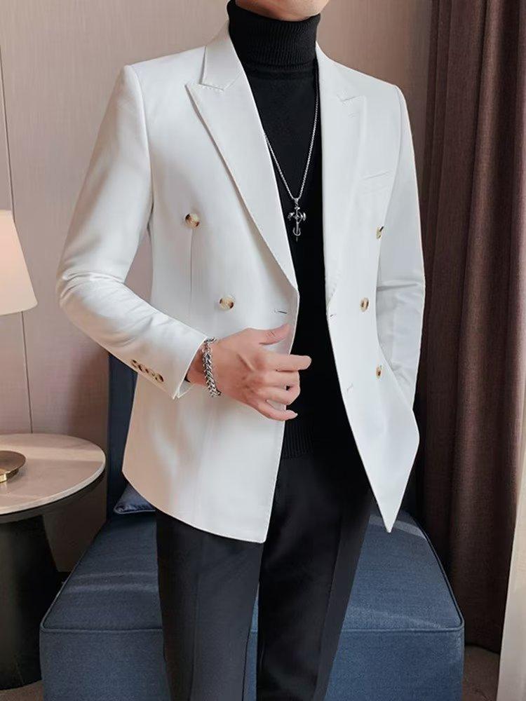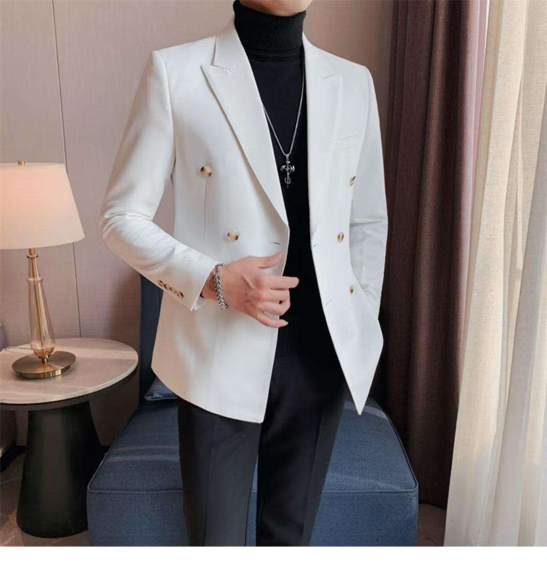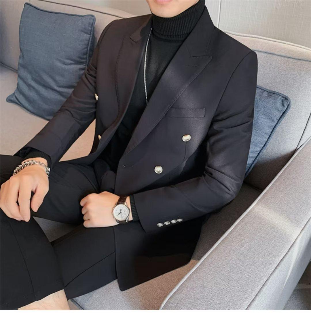 Chaqueta de Traje Casual de Doble Botonadura para Hombre Primavera y Otoño Negocios Británico Traje Único Moderno Slim Traje para Hombre