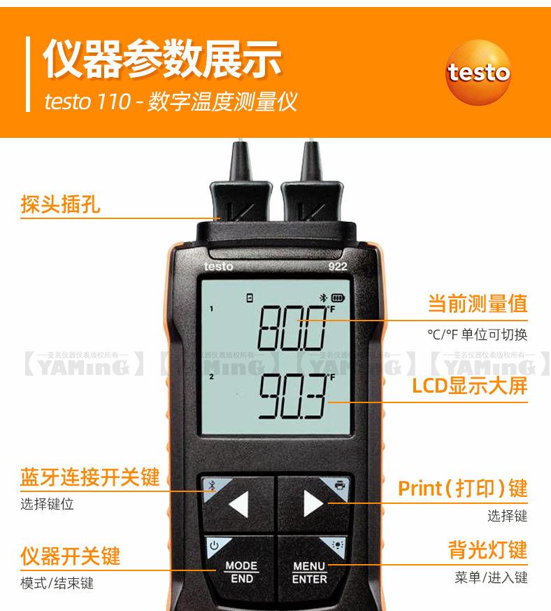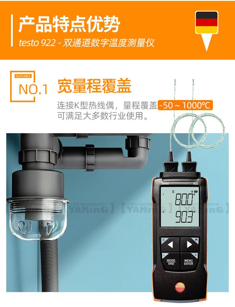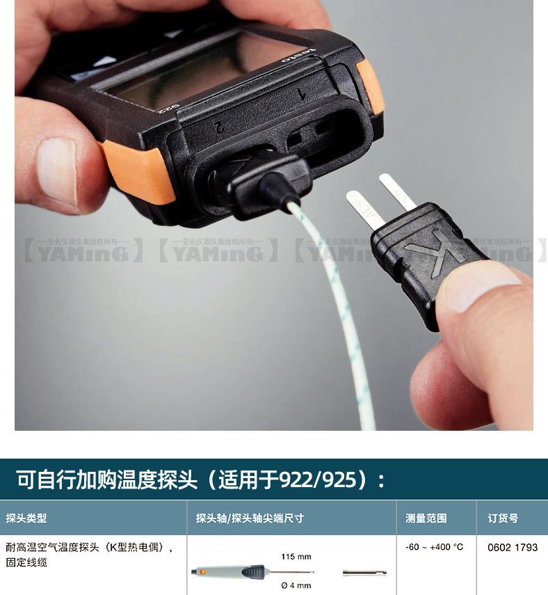 Termómetro Testo 922 Instrumento de Medición de Temperatura Digital de Doble Canal Industrial de Alta Precisión Tipo Sonda con Pantalla Digital