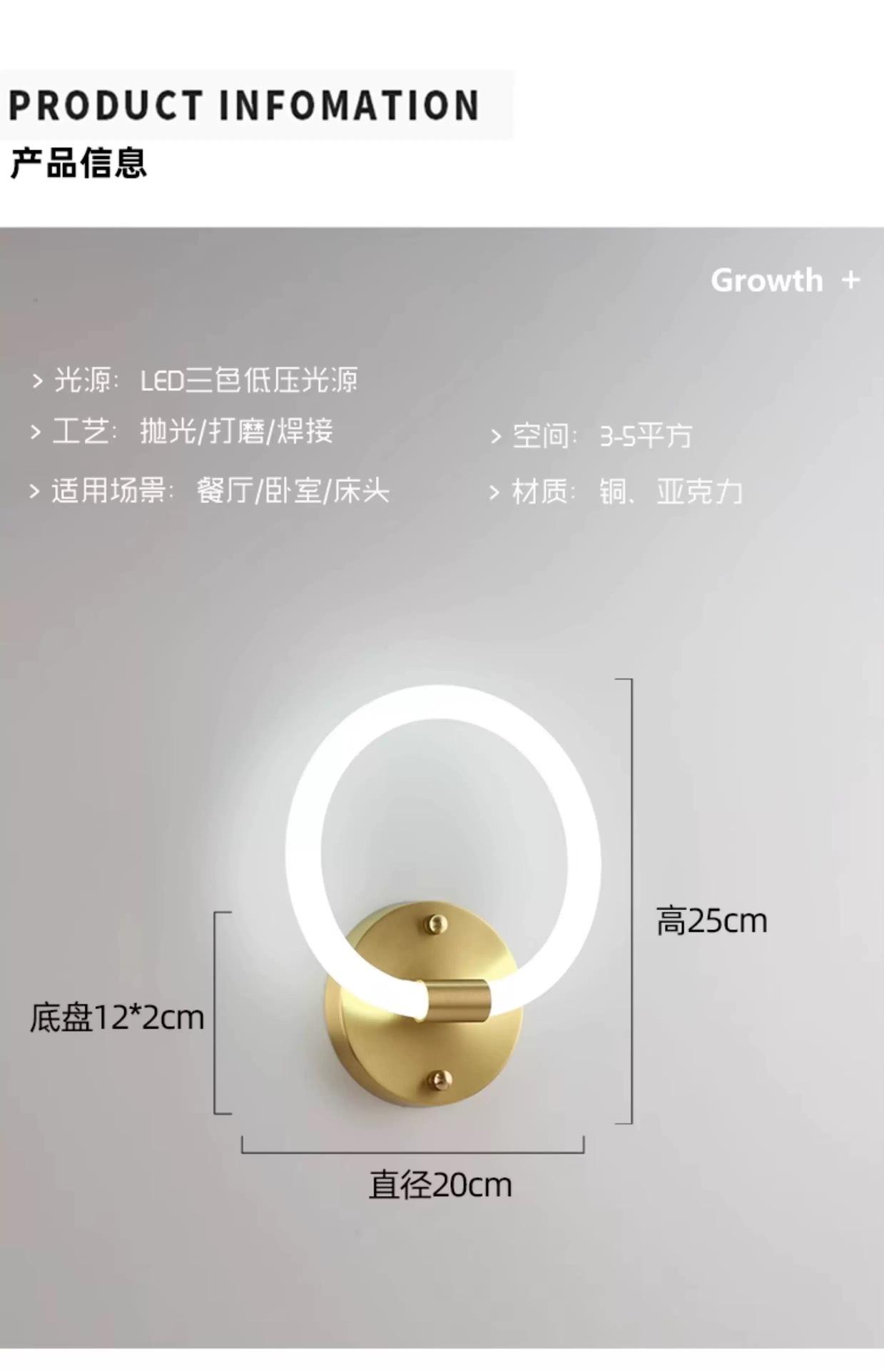 Lámpara de Pared de Fondo para Sala de Estar de Lujo Ligero, Simple para Pasillo, Corredor, Cobre Total, Creativa, para Dormitorio, Mesita de Noche, Circular, Luminosa