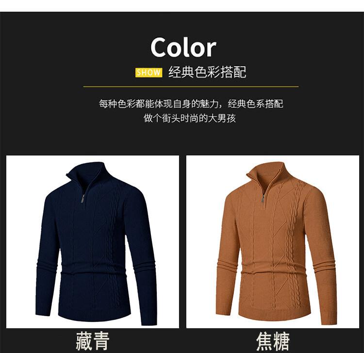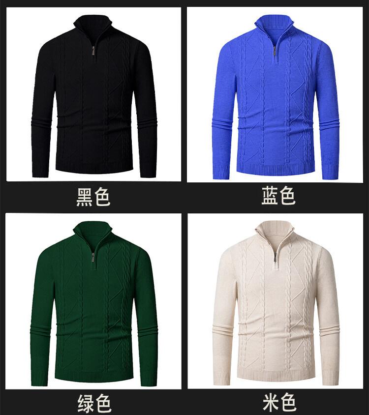 Comercio Exterior Amazon Transfronterizo Nuevo Tejido de Punto para Hombre Casual Camiseta Básica Medio Cierre de Cremallera Tejido de Punto Ajustado para Hombre Moderno