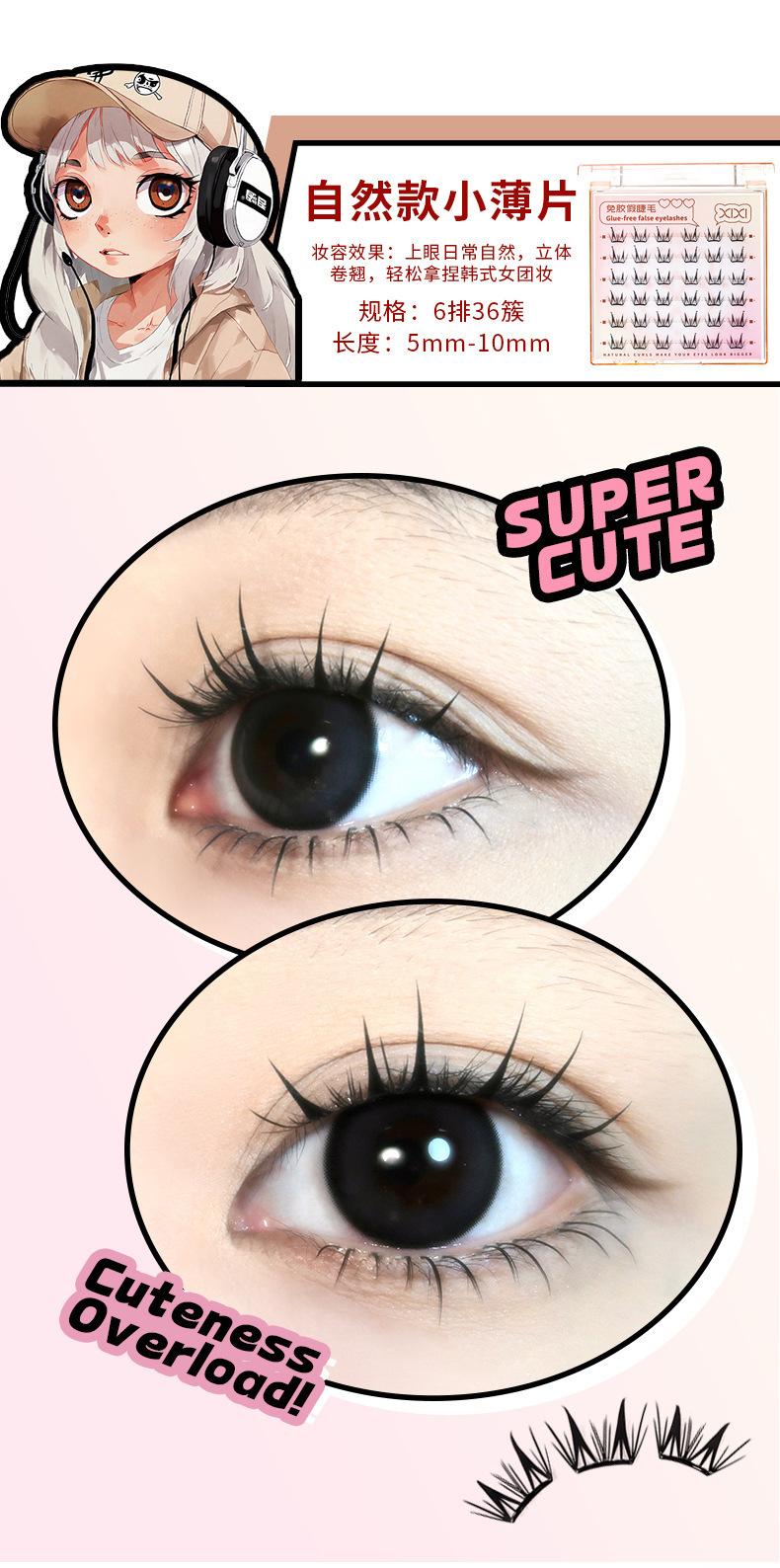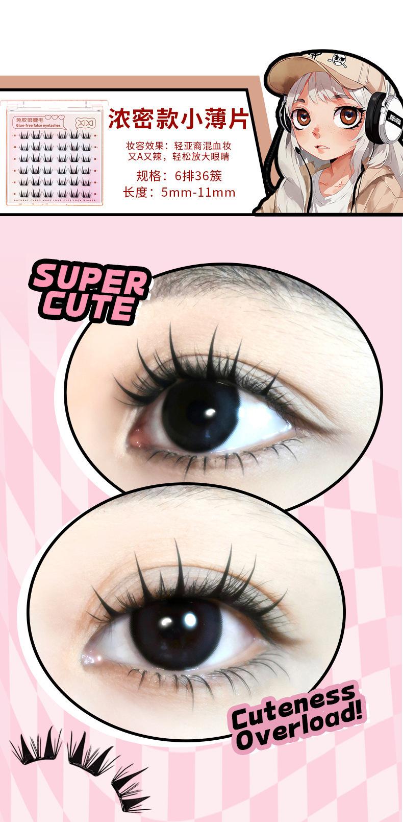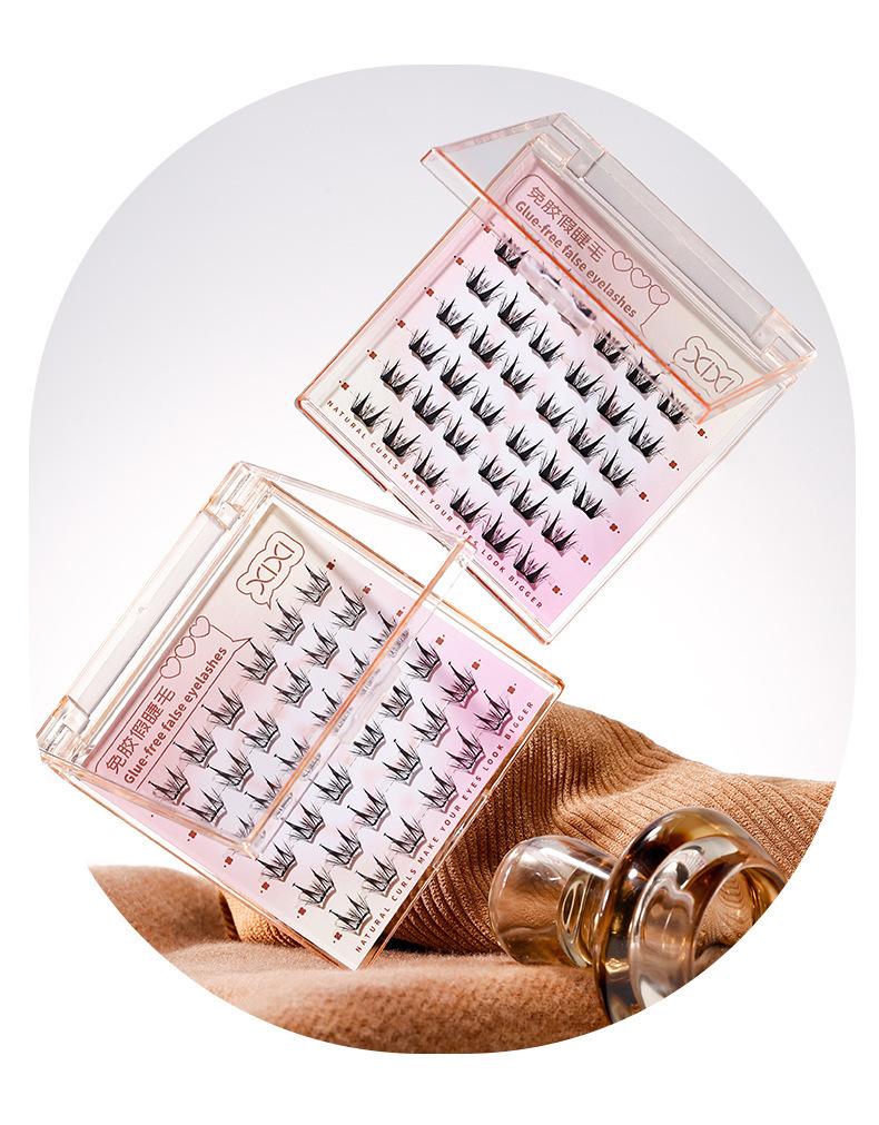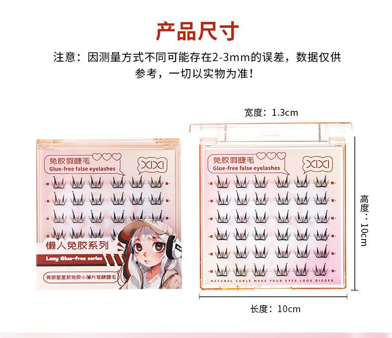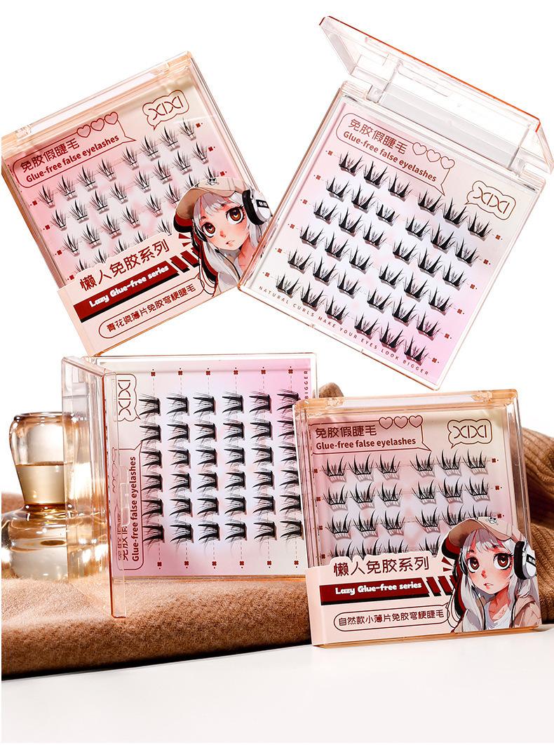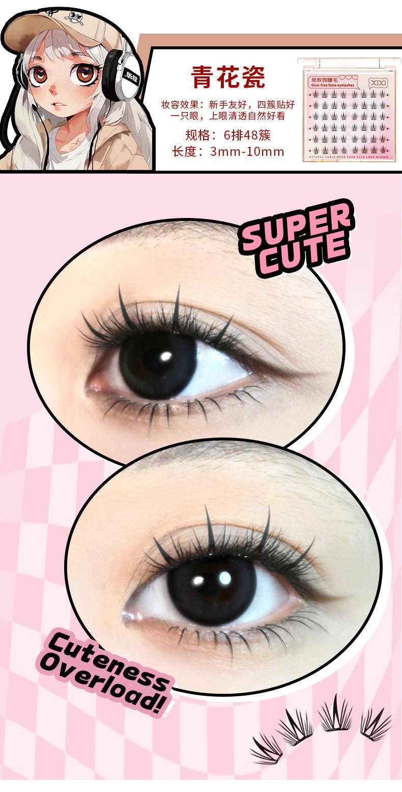 Xixi Natural Pestañas de Racimo Individuales de Tallo Curvado sin Pegamento de Copos Pequeños Pestañas Postizas Segmentadas Rizadas Gruesas Porcelana Azul y Blanca