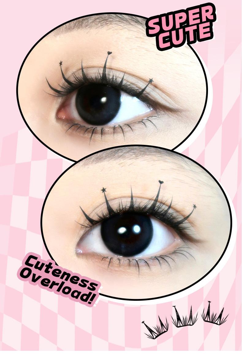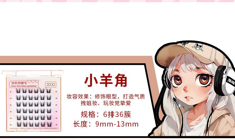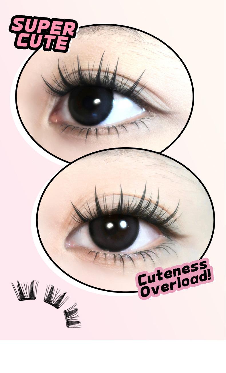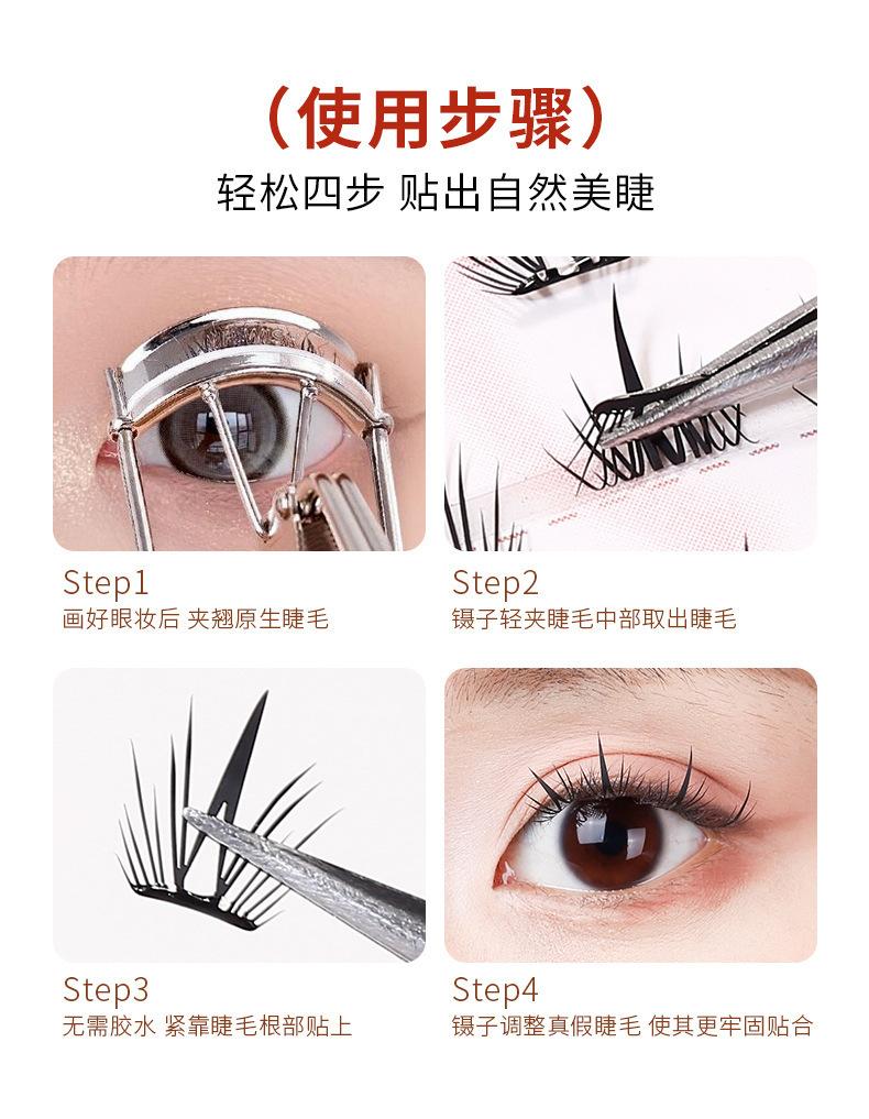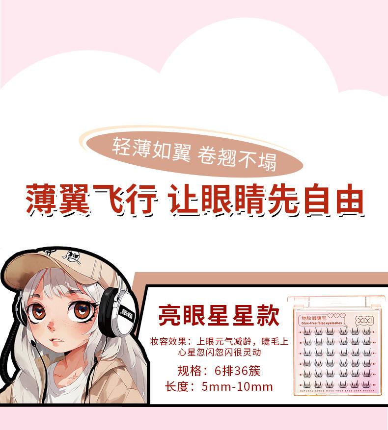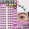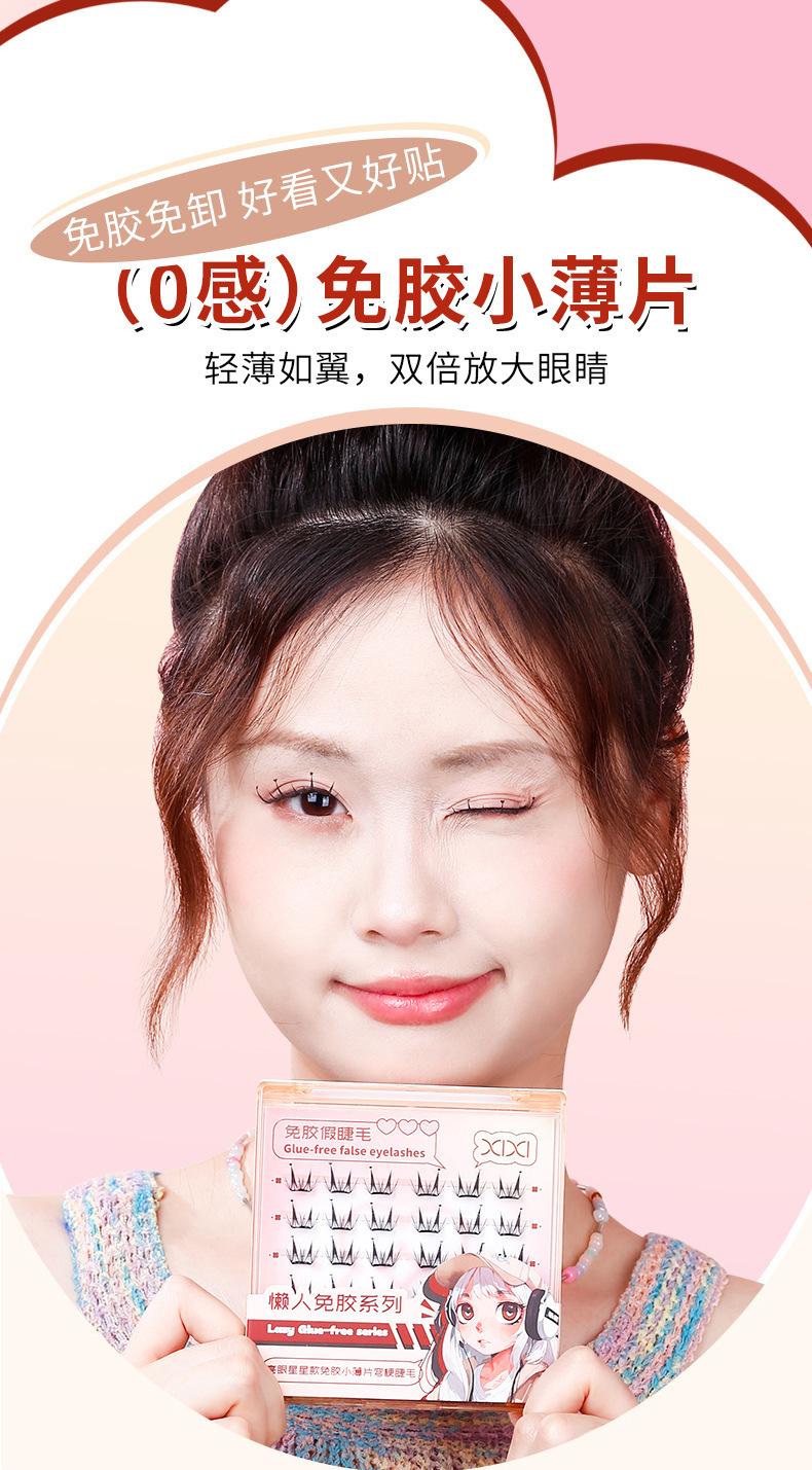 Xixi Natural Pestañas de Racimo Individuales de Tallo Curvado sin Pegamento de Copos Pequeños Pestañas Postizas Segmentadas Rizadas Gruesas Porcelana Azul y Blanca