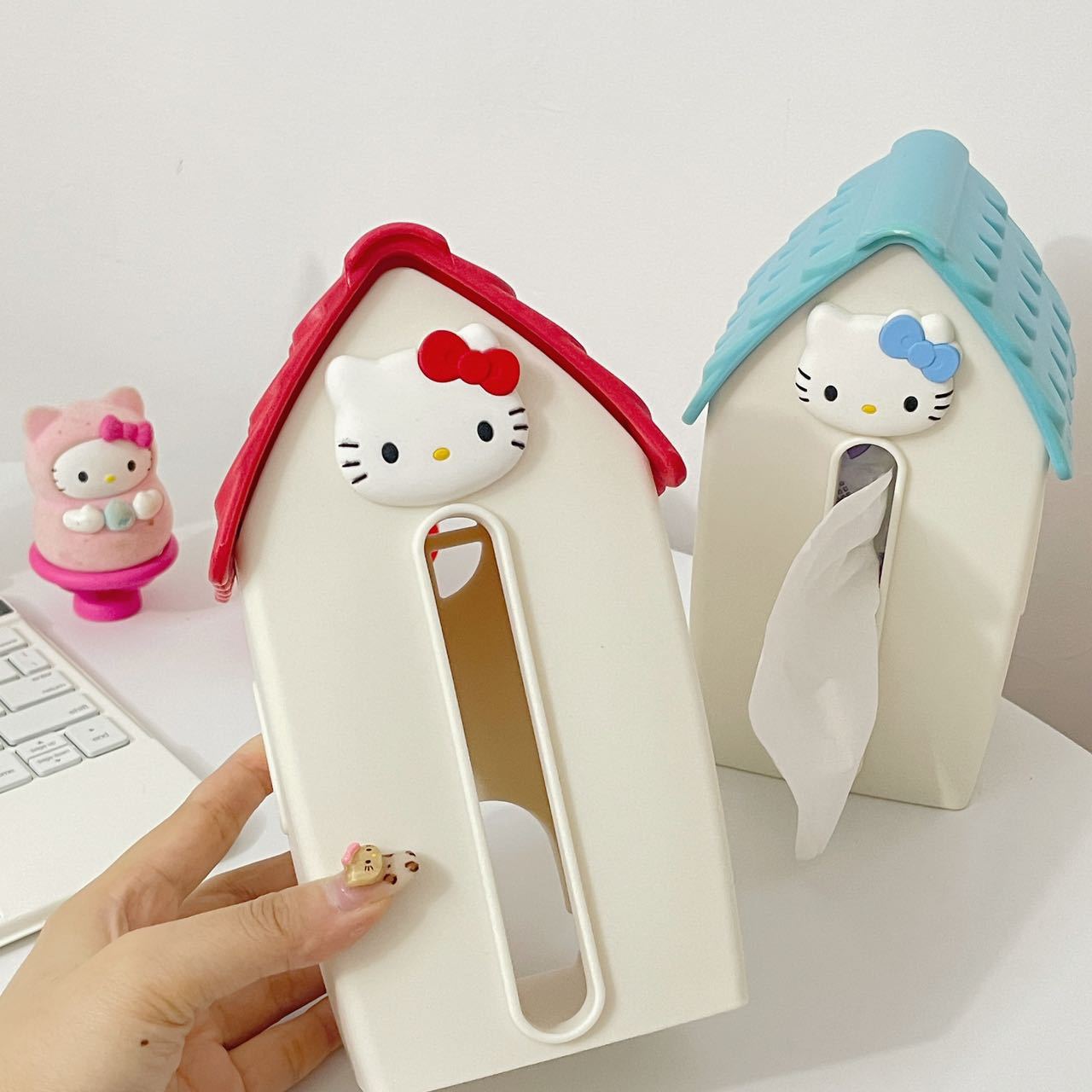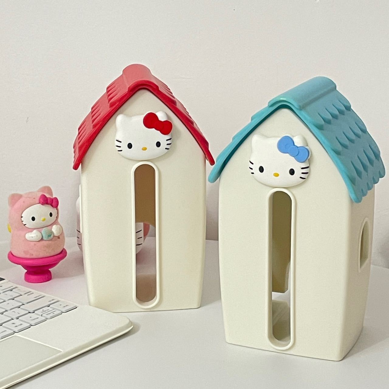Red house tissue box, Blue house tissue box