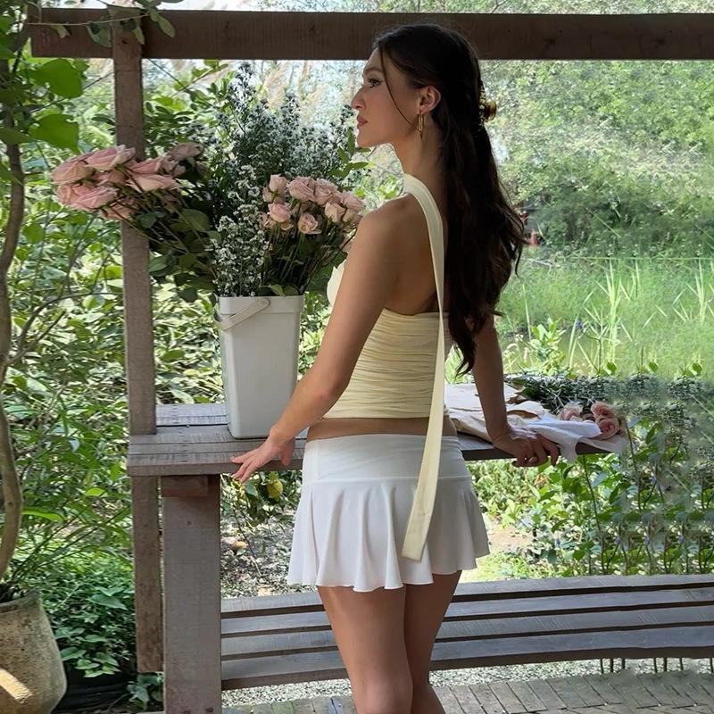 Top de tubo fruncido sexy sin espalda con cinta para mujer Ins Lujuria Pura Chica Caliente Versátil Camiseta ajustada para mujer