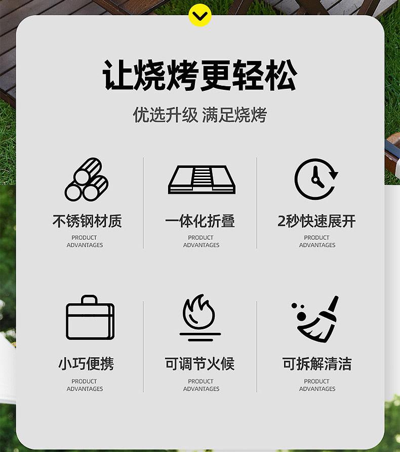 Parrilla de Barbacoa de Acero Inoxidable para Exterior Carbón Espesado Rejilla para Barbacoa Hogar Pequeña Plegable en un Segundo Parrilla de Carbón Estufa para Brochetas