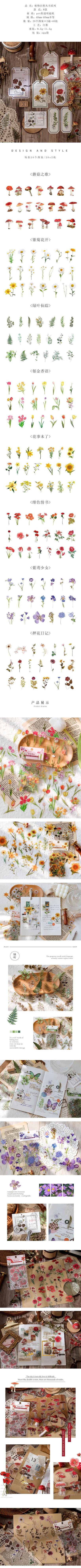Marcadores Creativos Hechos a Mano DIY Estudiantes de Primaria Decoración de Diario Material de Manualidades Pegatinas Transparentes Flores y Plantas Naturales