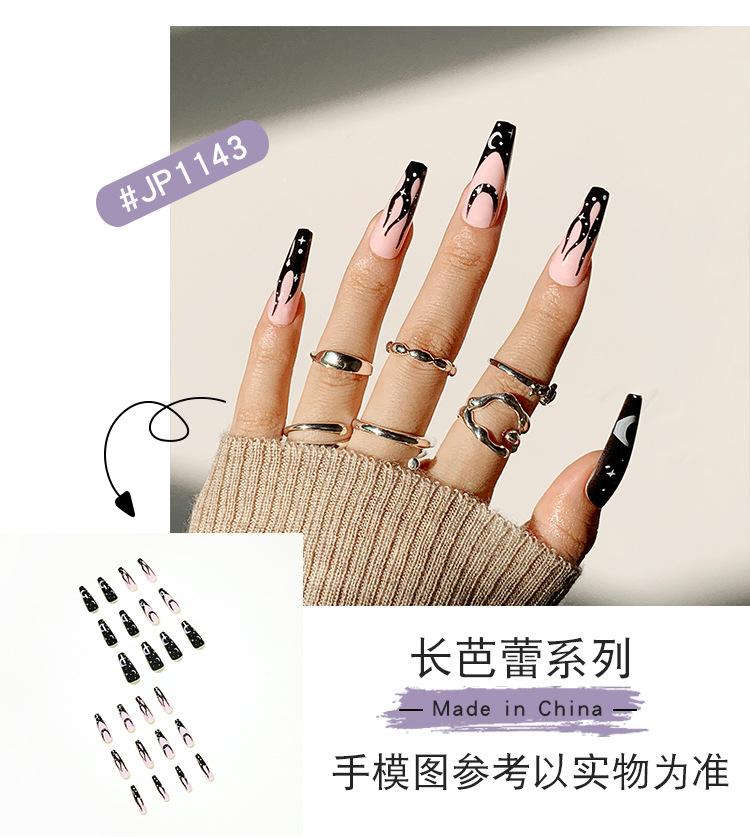 Compra Uñas Postizas Manicura Acabada Blanco y Negro Estrella y Luna Ropa Larga de Ballet Hombre Uñas Removibles Uñas a Presión Transfronterizo al por mayor en Joom.pro