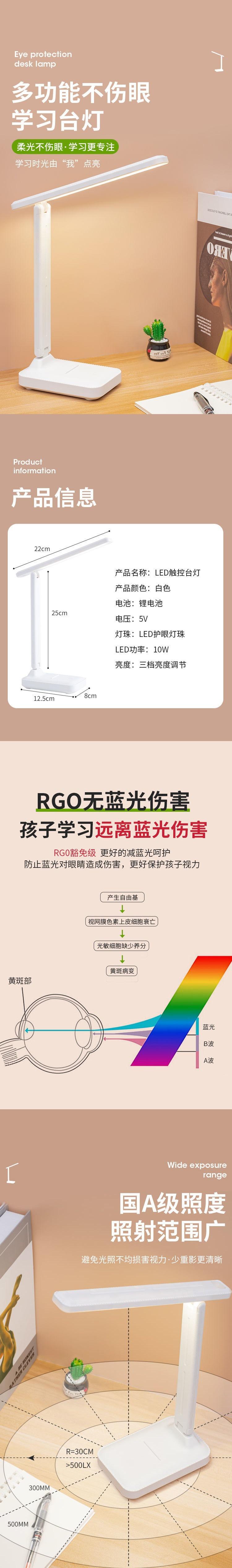 Lámpara de Escritorio LED con Atenuación Táctil Oficina Estudio Dormitorio Estudiantil Creativa Plegable Protección Ocular Lectura Lámpara de Noche