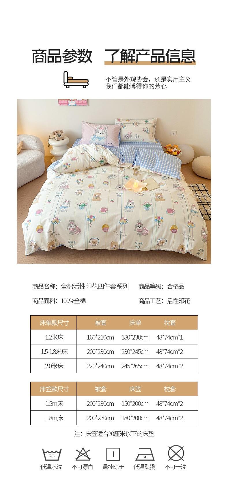1.2m bed sheet three-piece set, 1.5m bed sheet four-piece set, 1.8m bed sheet four-piece set, 2.0m bed sheet f...
