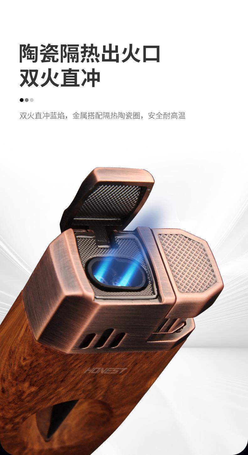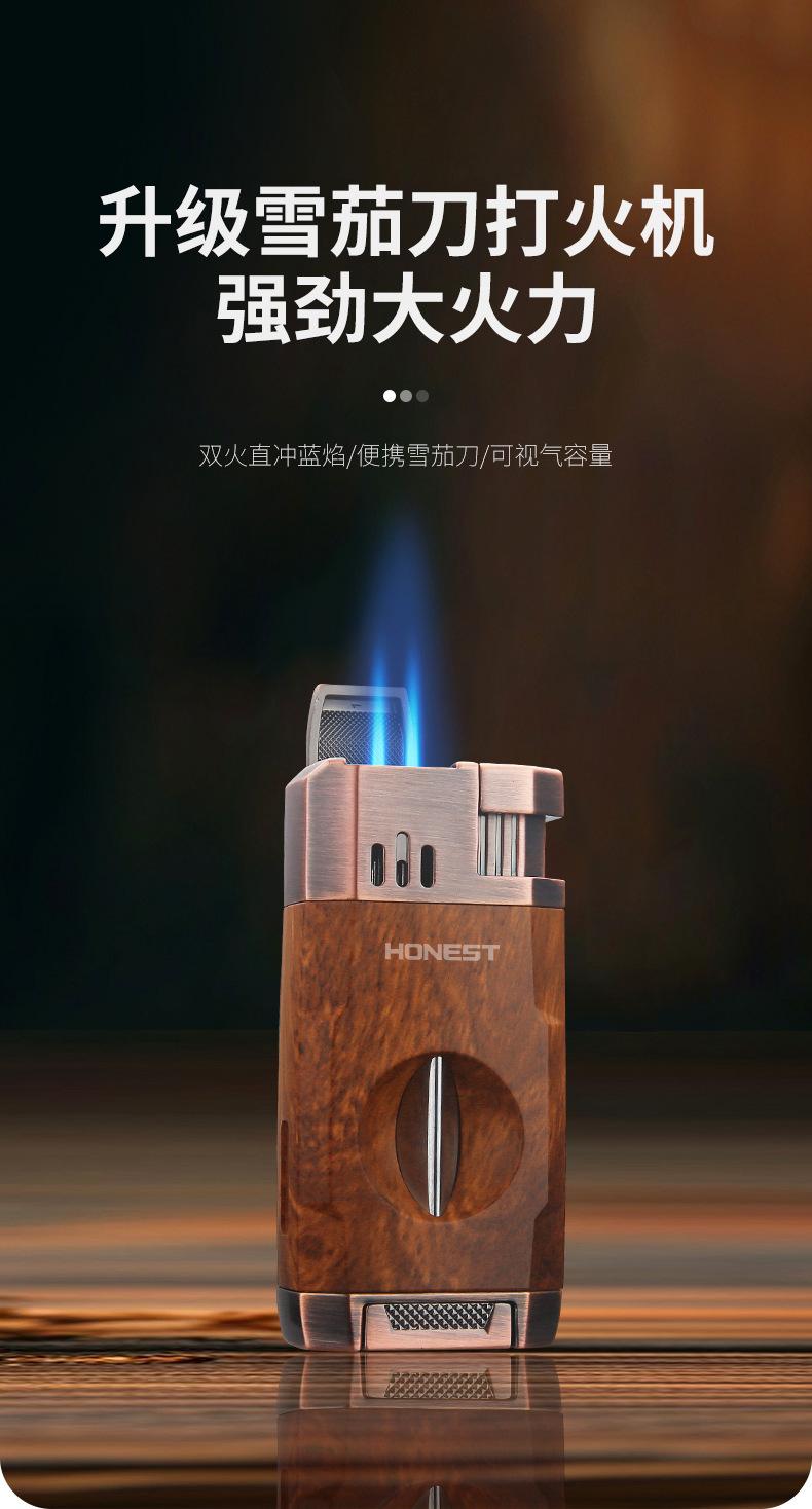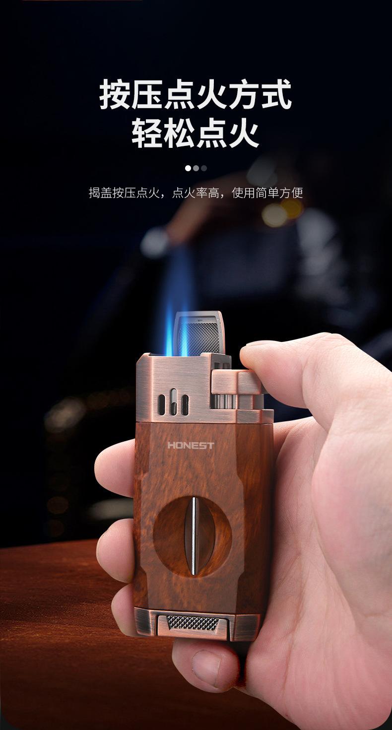 Baicheng Feipeng Encendedor de Cigarros Inflable Creativo de Doble Llama Directa Cortador de Cigarros en Forma de V Encendedor Duradero Punto de Chispa