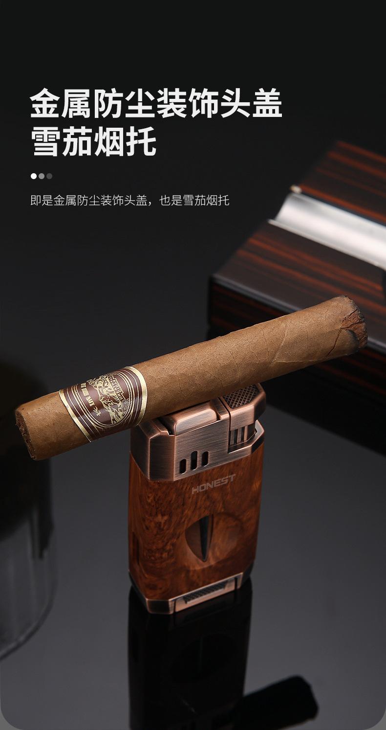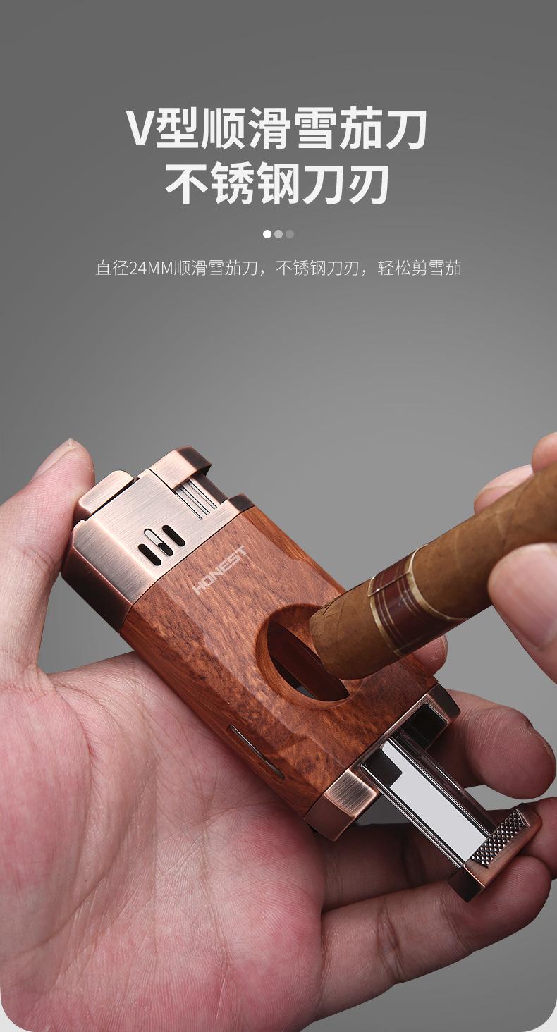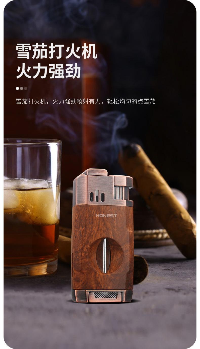 Baicheng Feipeng Encendedor de Cigarros Inflable Creativo de Doble Llama Directa Cortador de Cigarros en Forma de V Encendedor Duradero Punto de Chispa