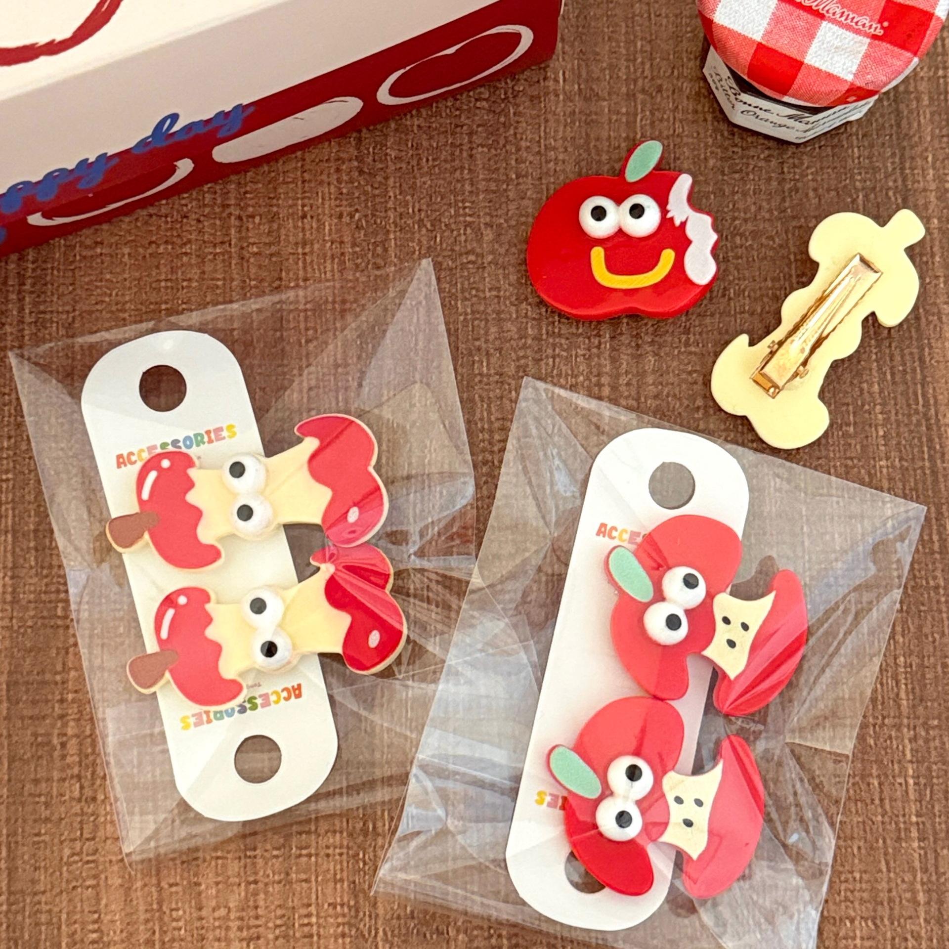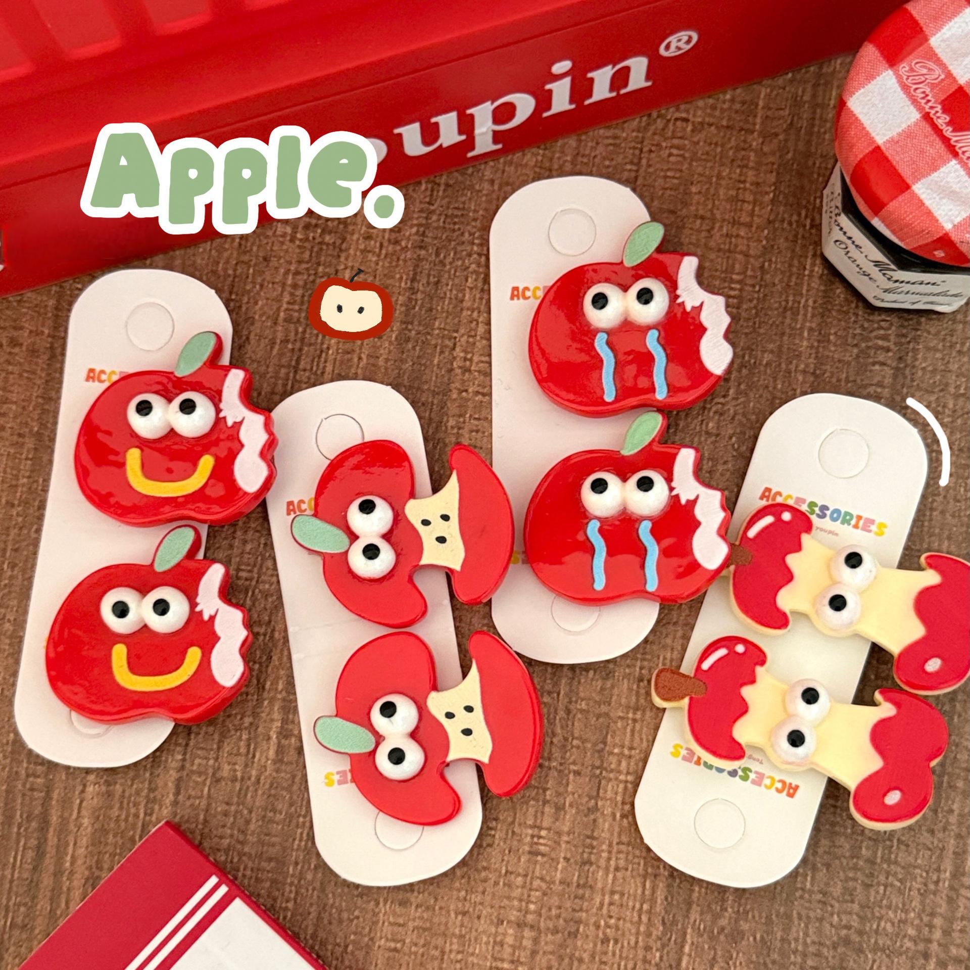 Horquilla de Manzana de Dibujos Animados Tridimensional, Tocado Divertido y Gracioso, Corazón Femenino, Clip Versátil para Flequillo, Dulce Horquilla Accesorios para el Cabello al por Mayor