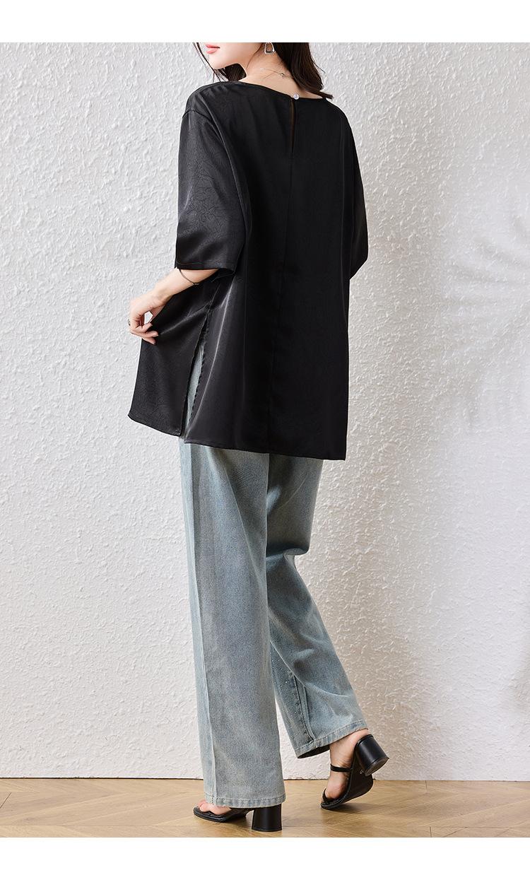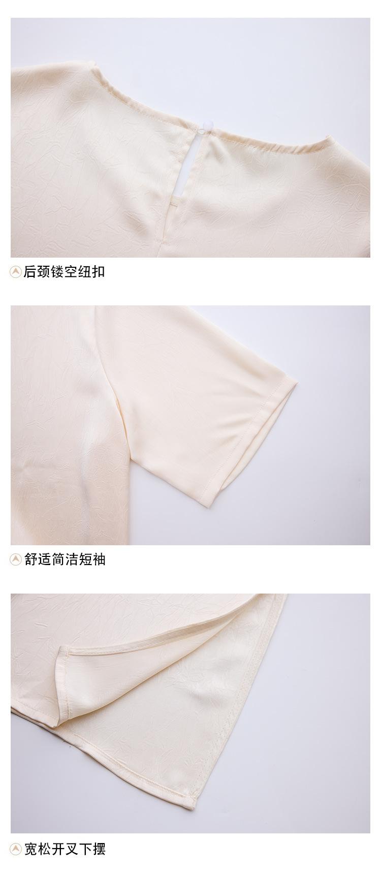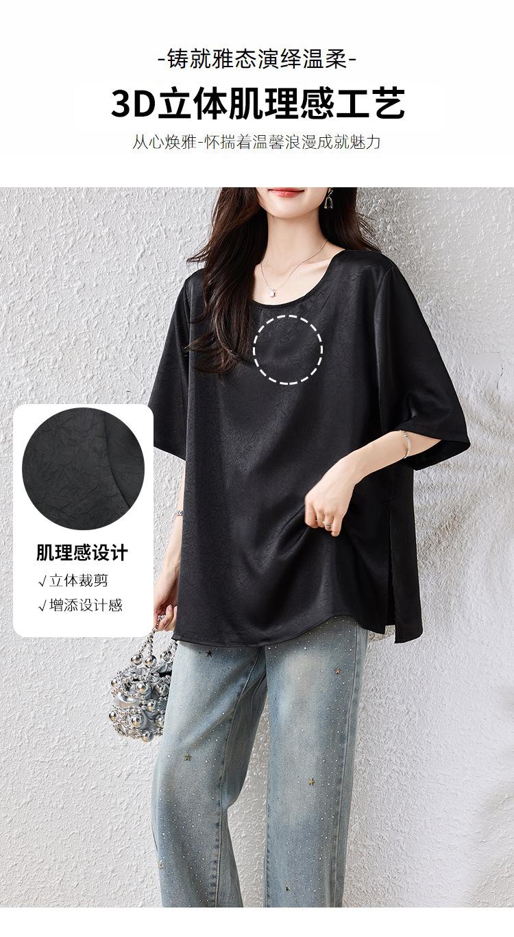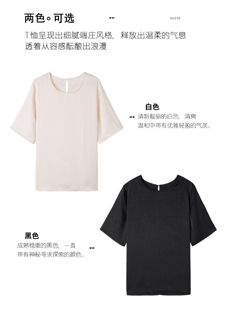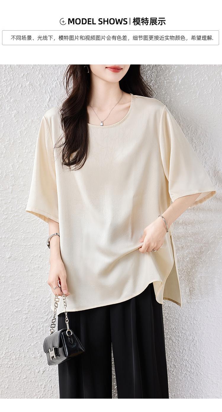 Compra Foto Real de Camiseta Simple de Cuello Redondo y Manga Corta para Mujer Verano Nuevo Top de Satén de Acetato Holgado Adelgazante al por mayor en Joom.pro