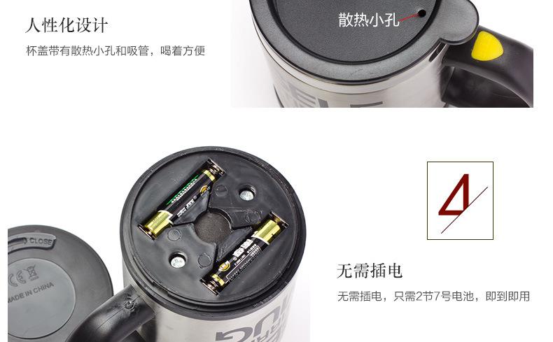 Taza de plástico de doble capa para coche Taza auto-removible de acero inoxidable de grado alimenticio Taza eléctrica portátil para calentar en el coche