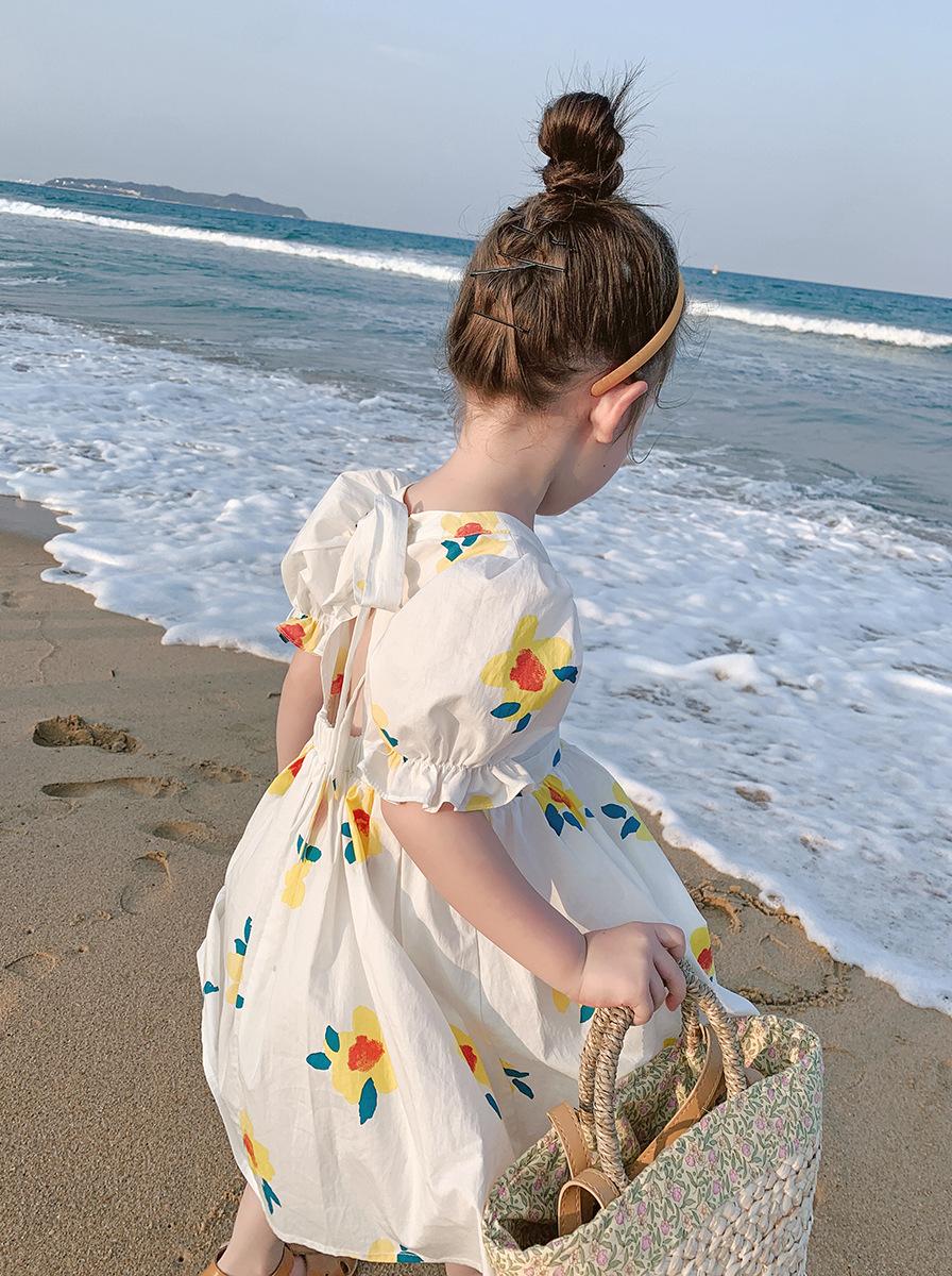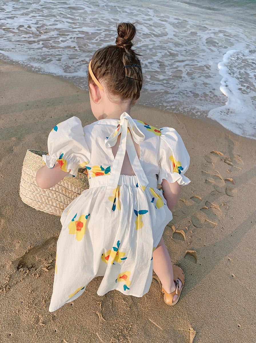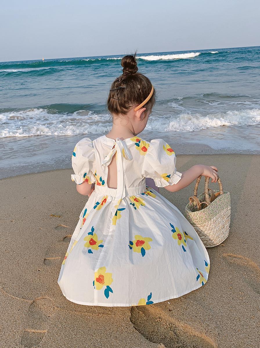 Ropa Infantil Transfronteriza al por Mayor Vestido de Niña Verano Nuevo Vestido de Princesa sin Espalda con Flores Frescas Pequeñas para Niñas