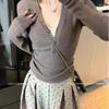 Top Básico de Punto de Manga Larga para Mujer, Francés, Ajustado, Sexy, de Cuello en V Profundo, Color Puro, Casual, para Fondo, Venta al por Mayor