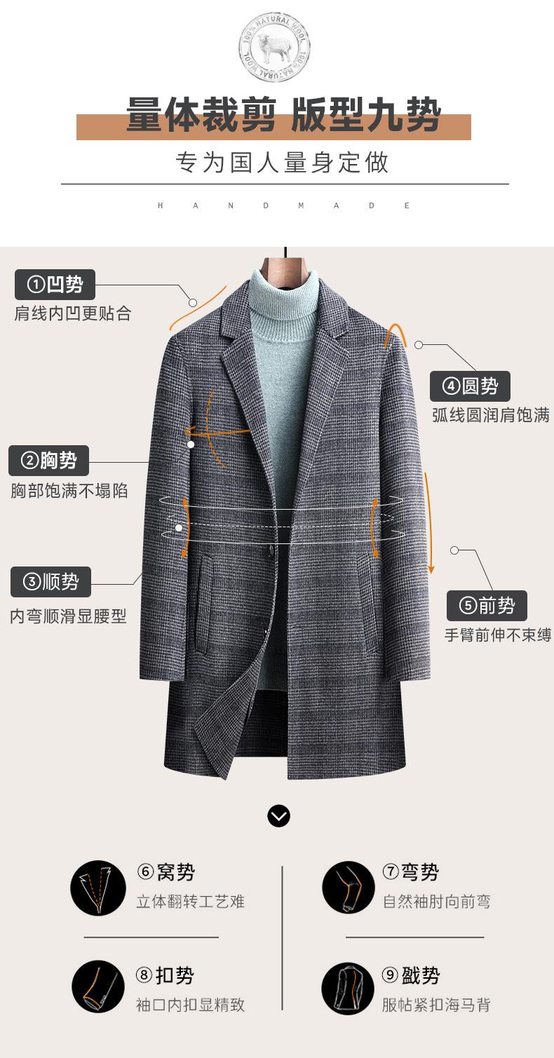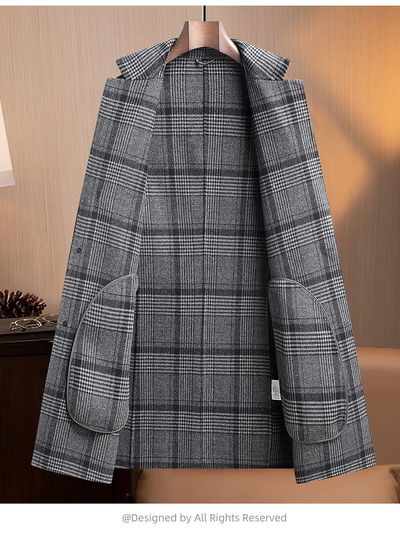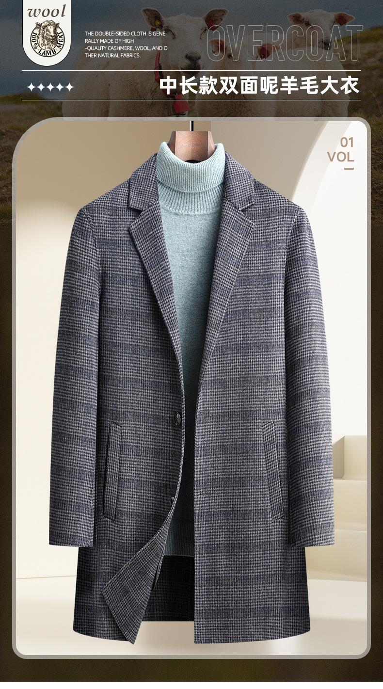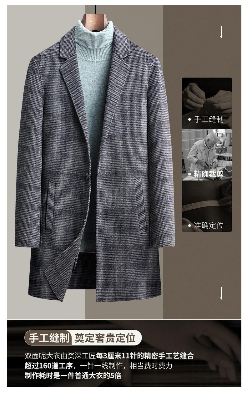 Otoño e Invierno Nuevo Abrigo de Lana de Doble Cara para Hombre, Slim, Largo Medio, de Cachemira, Cortavientos, Chaqueta para Hombre