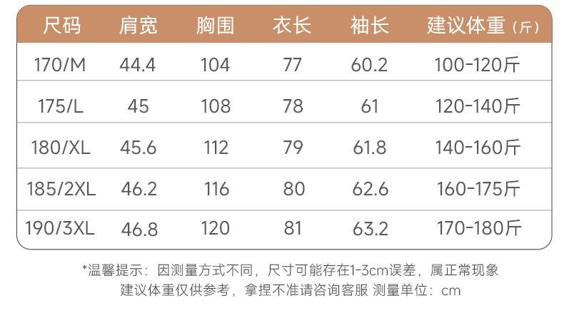 170/m, 175/ l, 180/xl, 185/xxl, 190/xxl