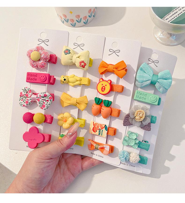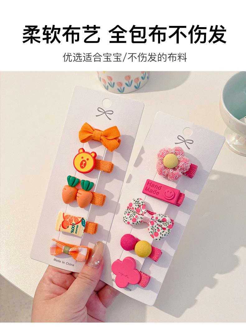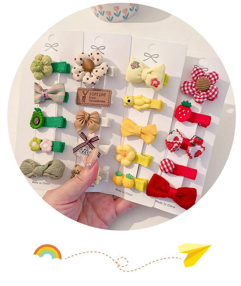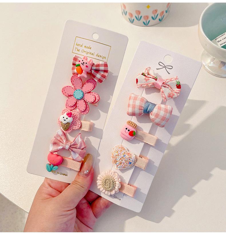 3#Crown pink cherry hair clip, 2#Turmeric ear hair clip, 1#Pink plaid hair clip, 2#Cute purple rabbit hair cli...