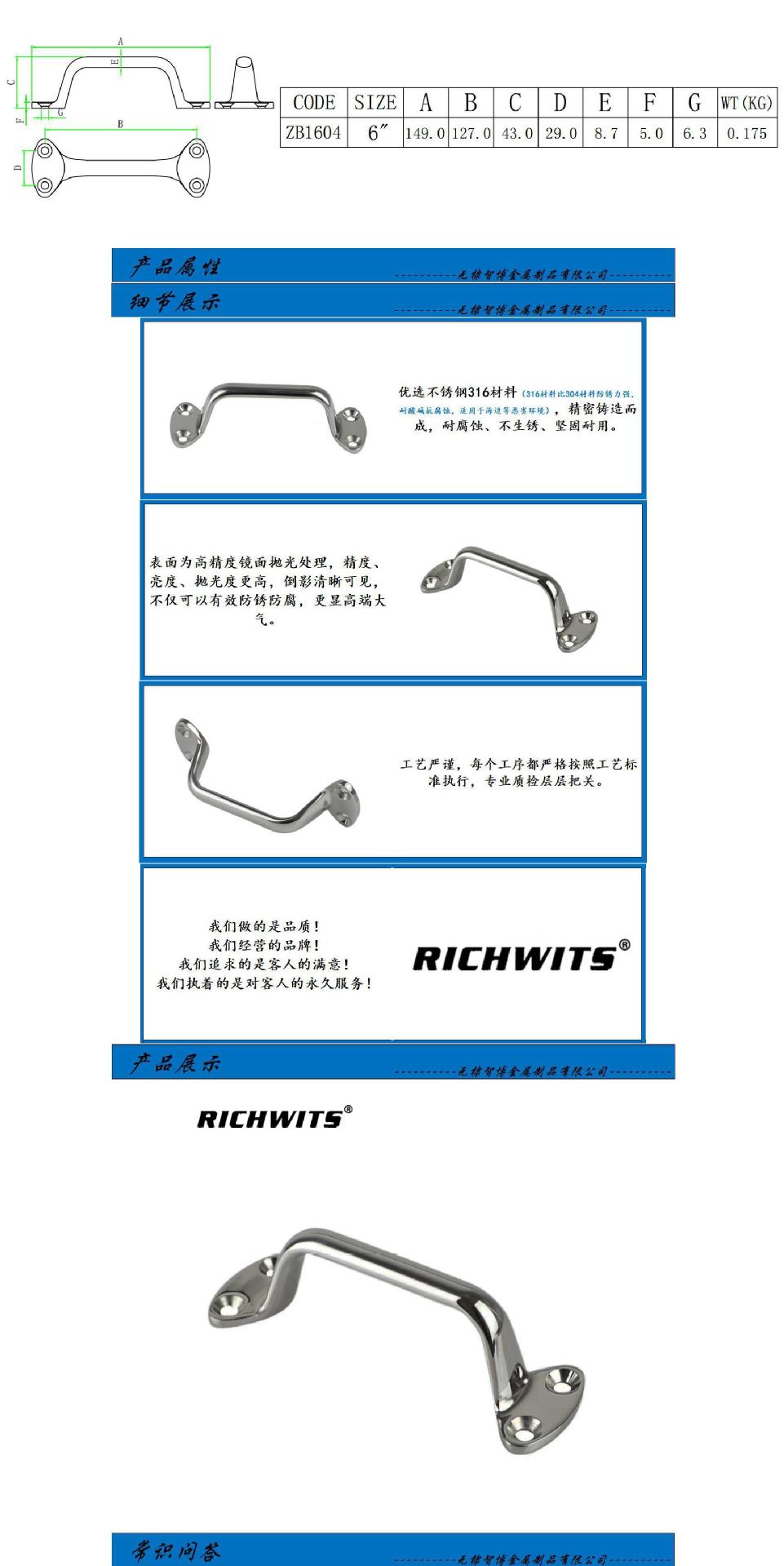 Acero Inoxidable 316 Barco Yate Manija Manija de Tracción 150mm Accesorios de Ferretería Marina Manija de Elevación para Barco