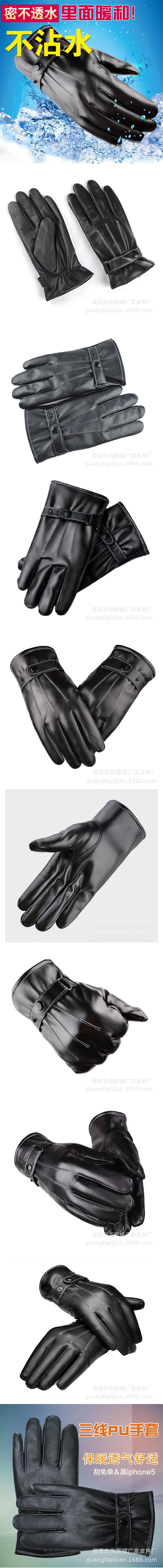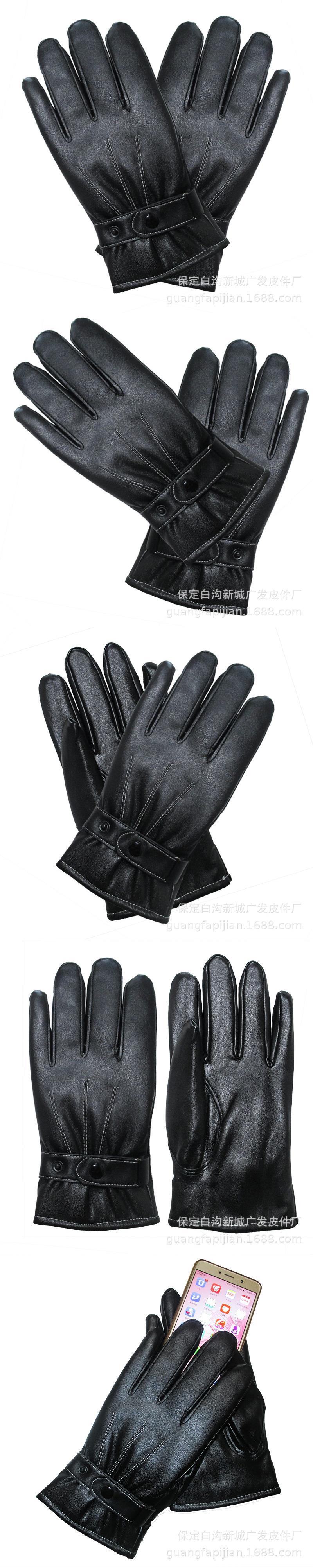 Otoño e Invierno Guantes Cálidos de Cuero para Hombre con Pantalla Táctil Pu Tres Costillas Guantes de Cuero Guantes de Ciclismo a Prueba de Viento Tienda de Fábrica