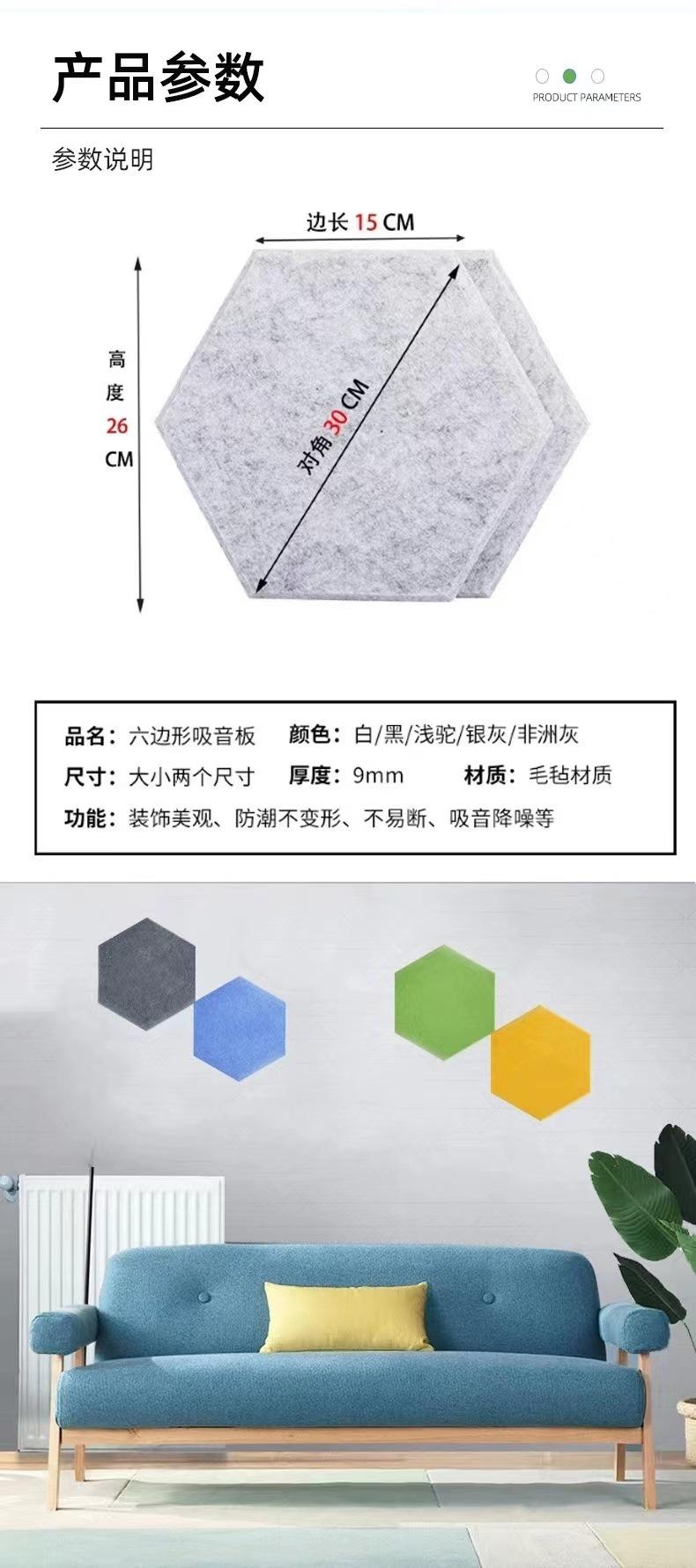 Tablero de Aislamiento Acústico de Fibra de Poliéster Tablero Hexagonal Absorbente de Sonido Autoadhesivo Pared de Fondo Hexagonal Creativa para el Hogar Jardín de Niños