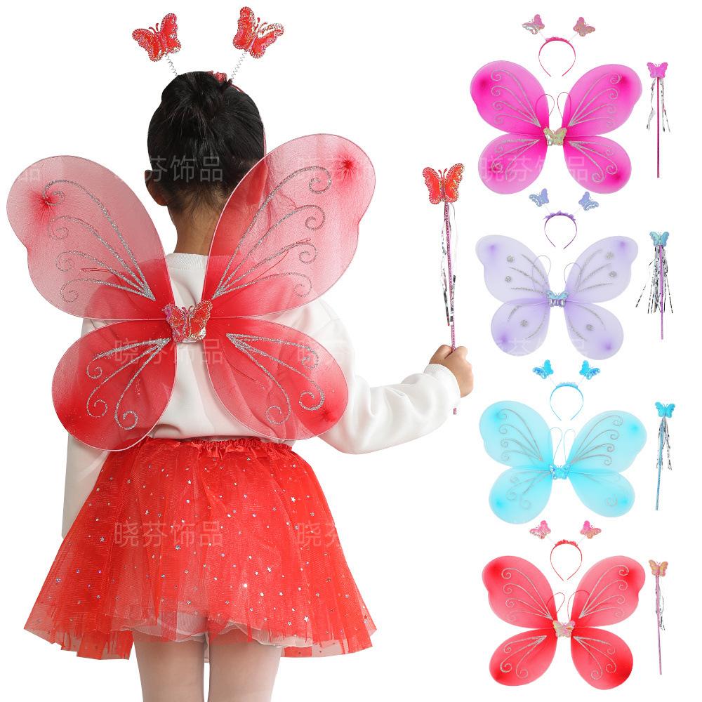 Accesorios para actuación del Día del Niño alas de mariposa alas de hada elfo disfraz de escenario femenino diadema de mariposa varita de hada