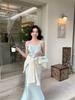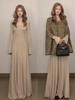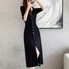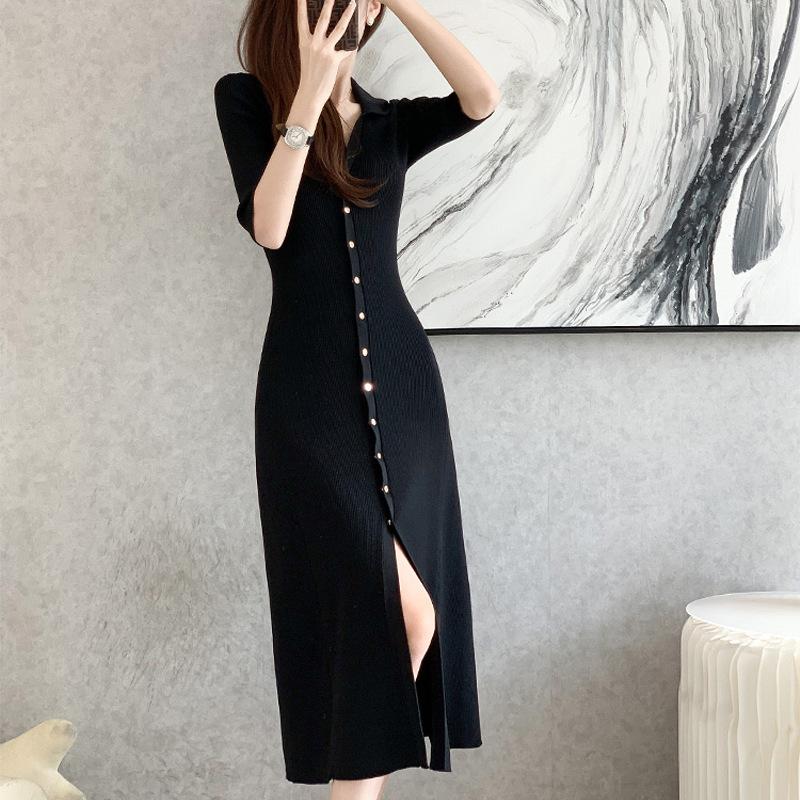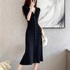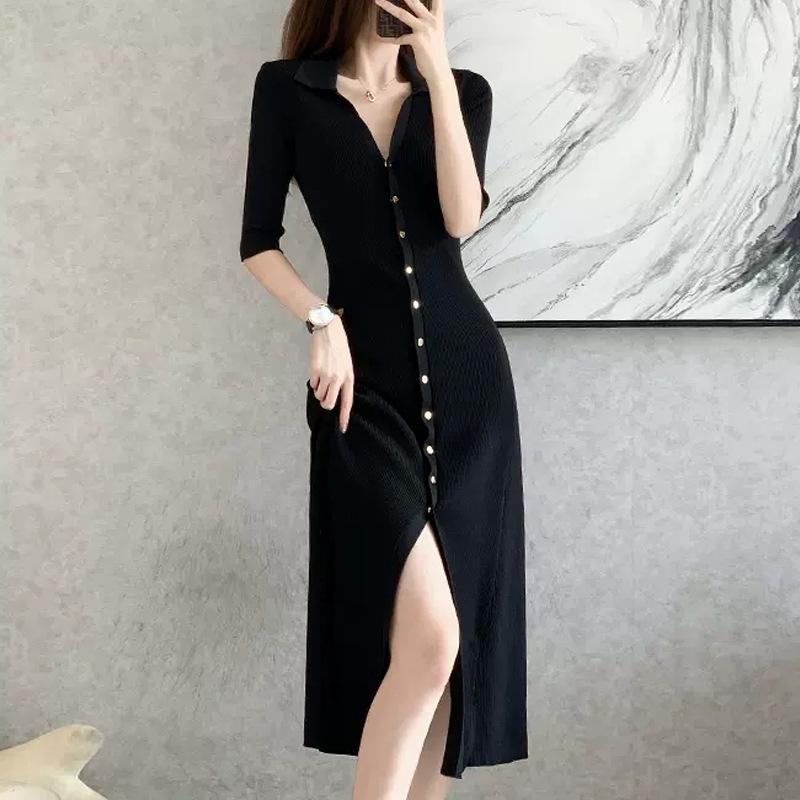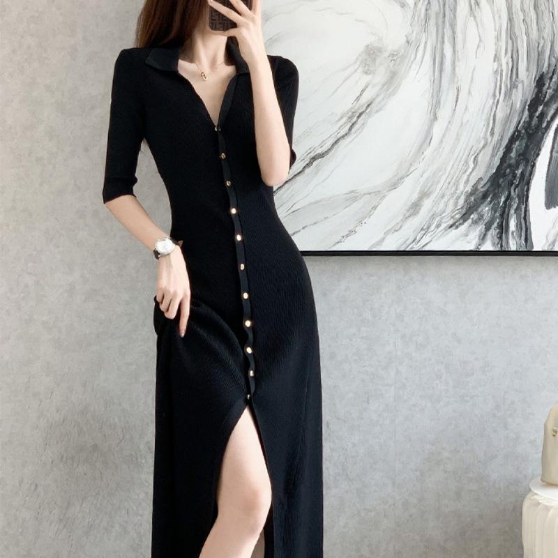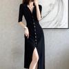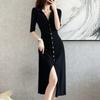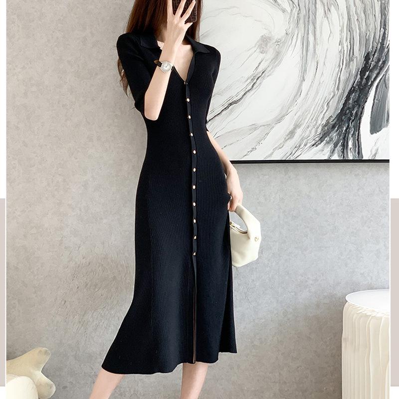 Vestido de Verano Estilo Francés con Cuello en V y Manga Corta Moda Estilo Occidental Vestido Midi Elegante con Cintura Ajustada Vestido de Punto de Corte Slim