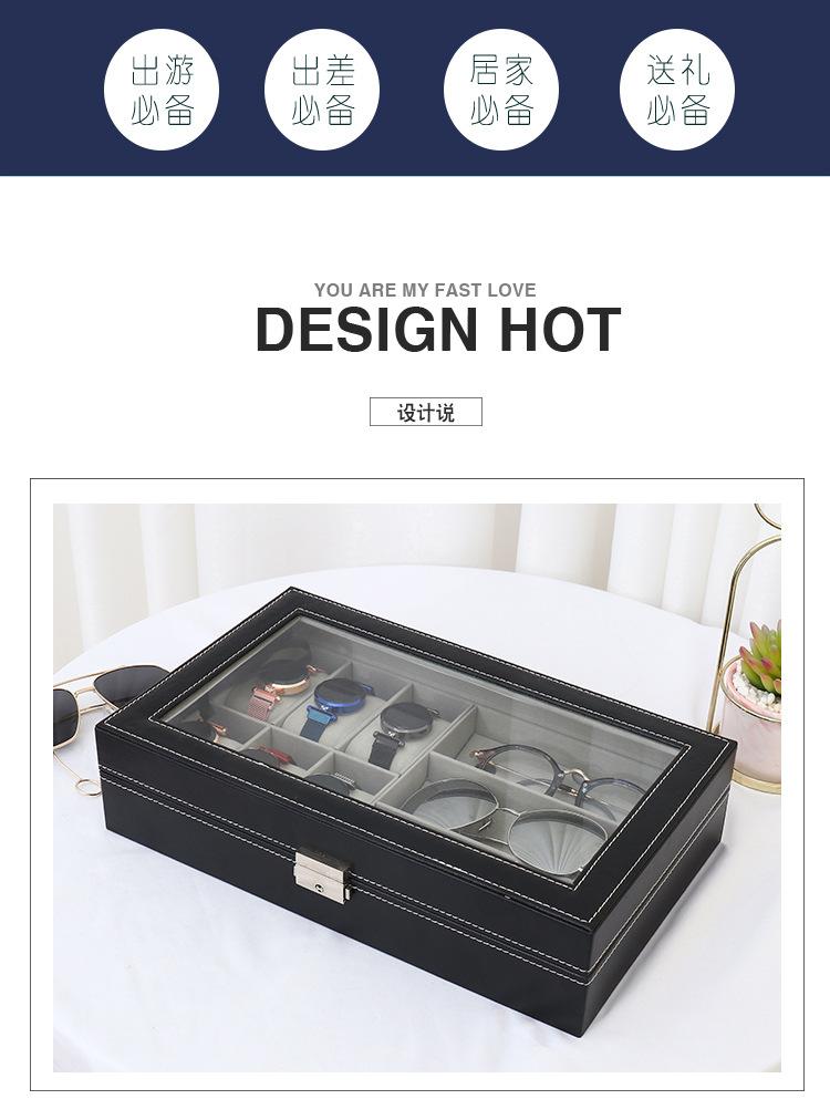 Caja de Reloj Multifuncional de Fábrica Caja de Joyería Caja de Almacenamiento para Gafas de Gran Capacidad Caja de Exhibición para Gafas de Sol Caja de Almacenamiento con Tapa