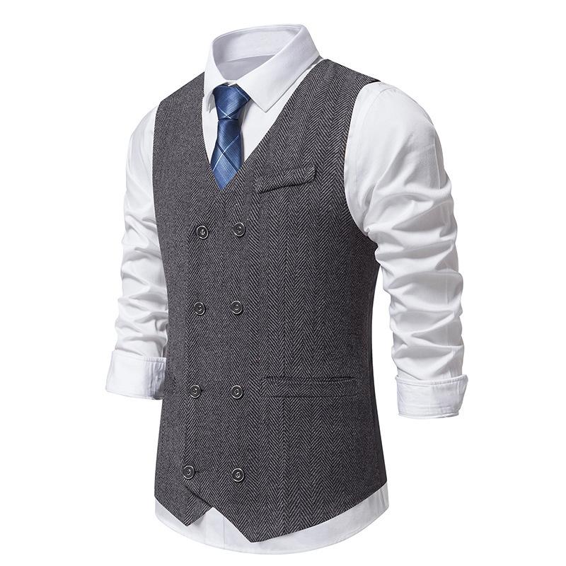 Otoño e invierno 2023 nuevo chaleco retro cruzado talla europea Amazon para hombre, moda, moderno, chaleco de traje
