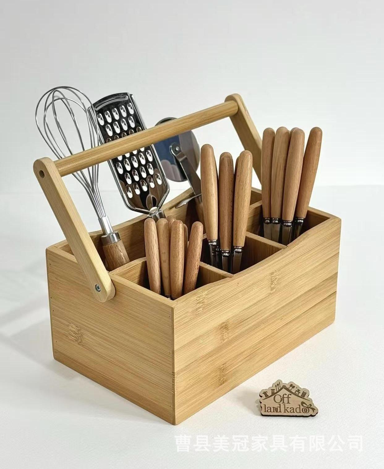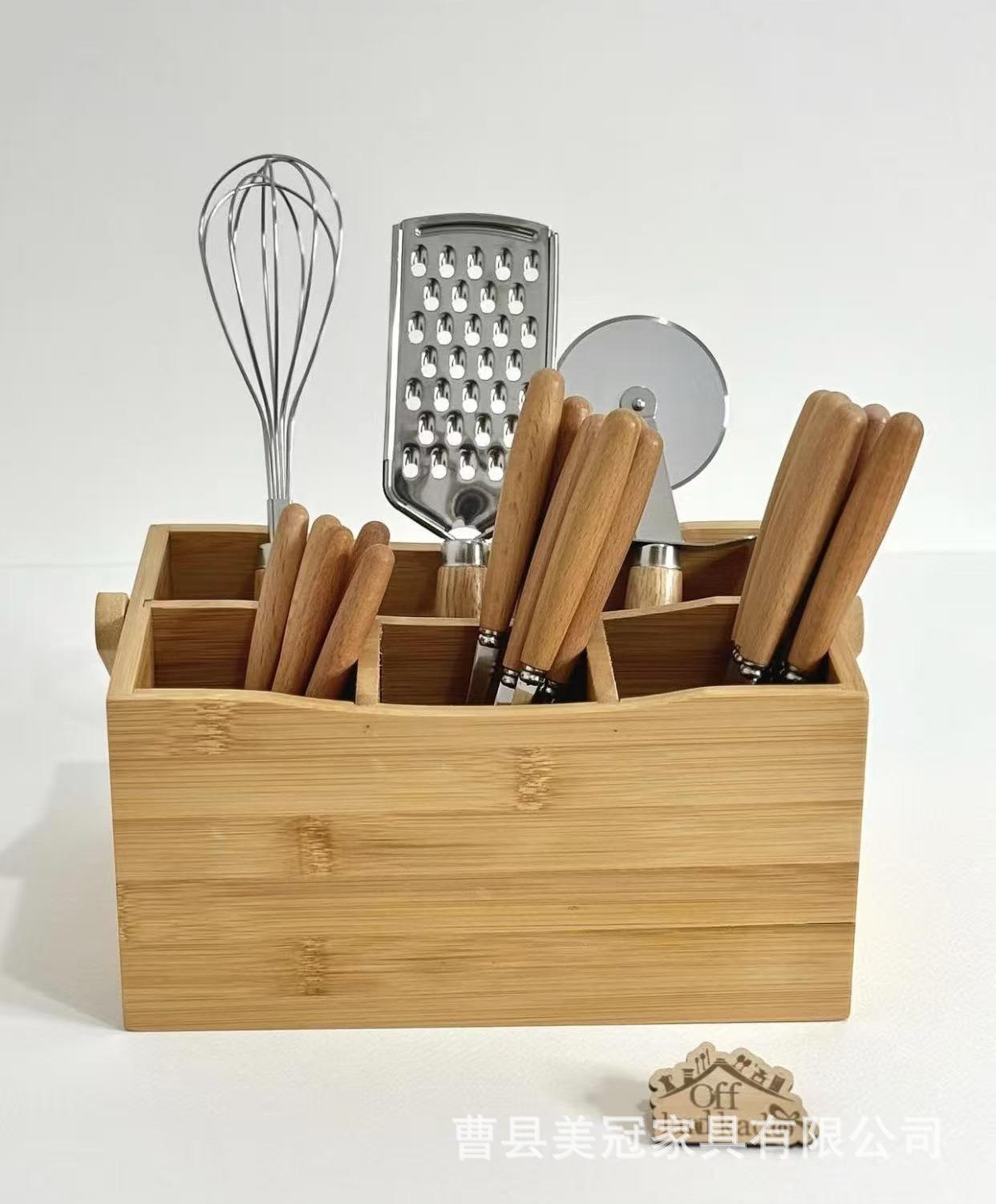 Temu Transfronterizo Nuevo Cuchillo y Tenedor Caja de Almacenamiento de Madera Maciza Cocina Acabado Placa de Expansión Caja de Almacenamiento de Vajilla Hogar Stock Listo
