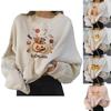 Top Vintage de Moda de Cuello Redondo y Manga Larga con Estampado Digital y Mangas Color Block, Camiseta Versátil y a la Moda para Mujer, Venta al por Mayor Transfronteriza