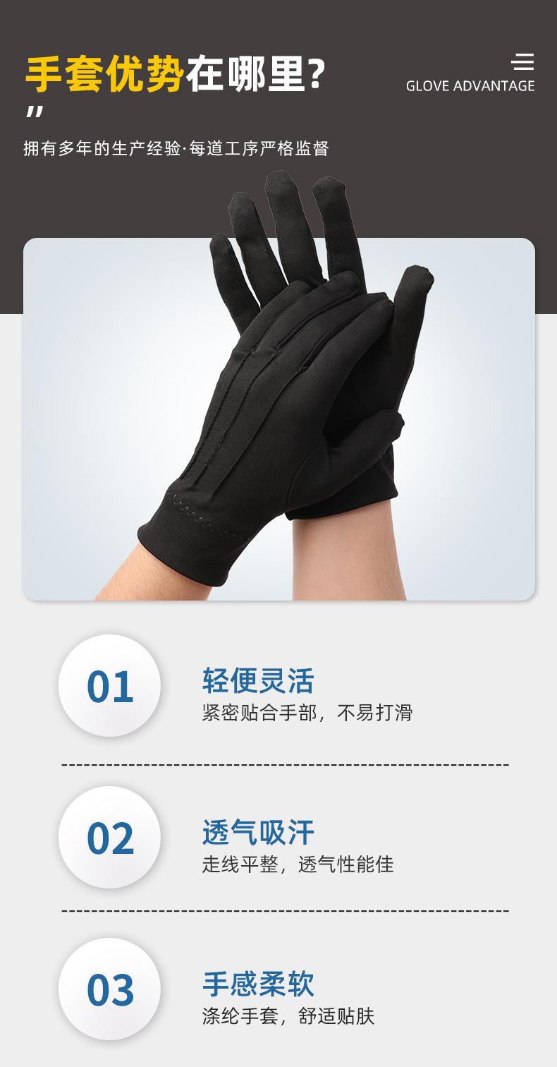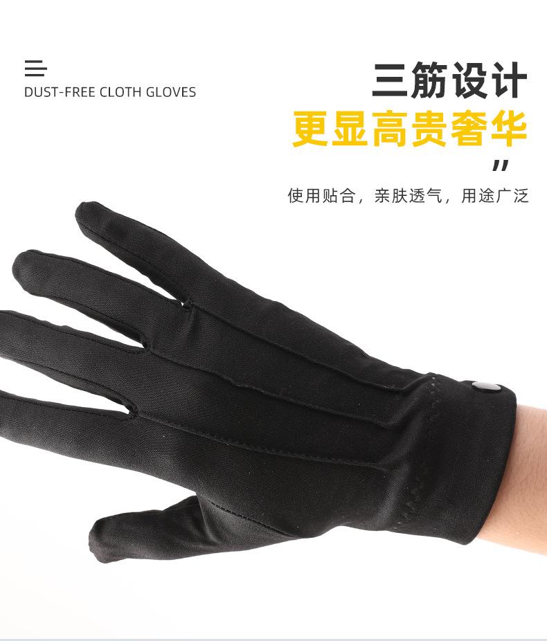 En stock mayoreo negro poliéster tres costillas hebilla de uña guantes antigüedades juego cultural guantes de inspección de calidad guantes para tareas domésticas guantes de etiqueta