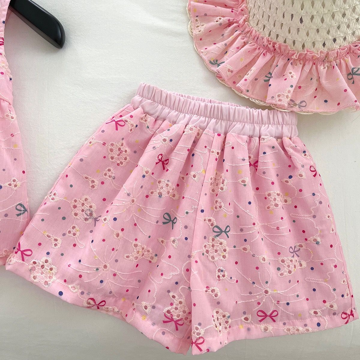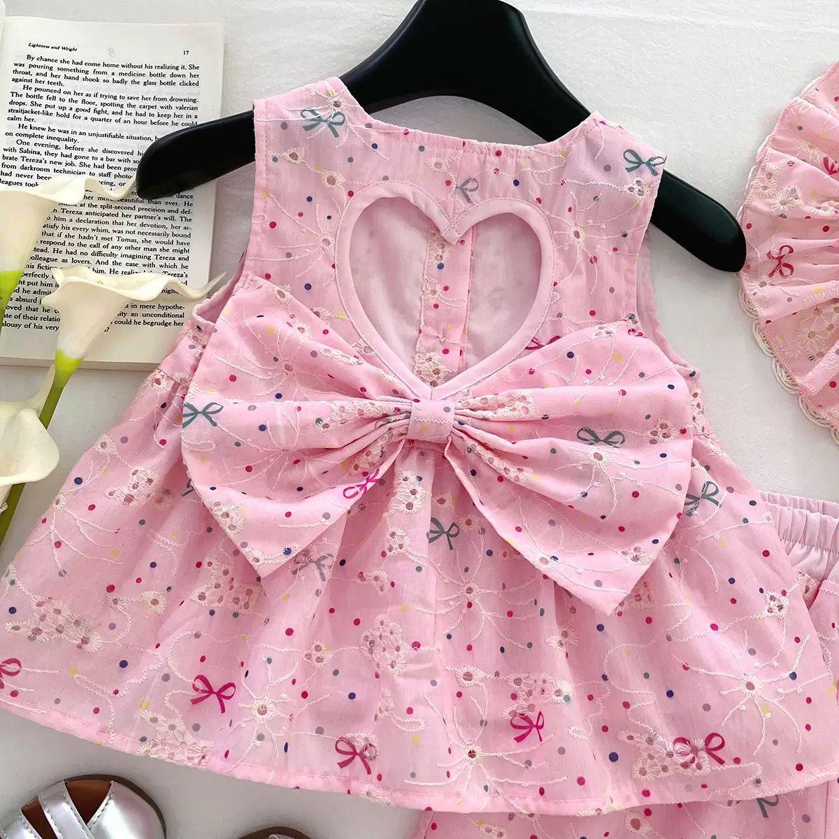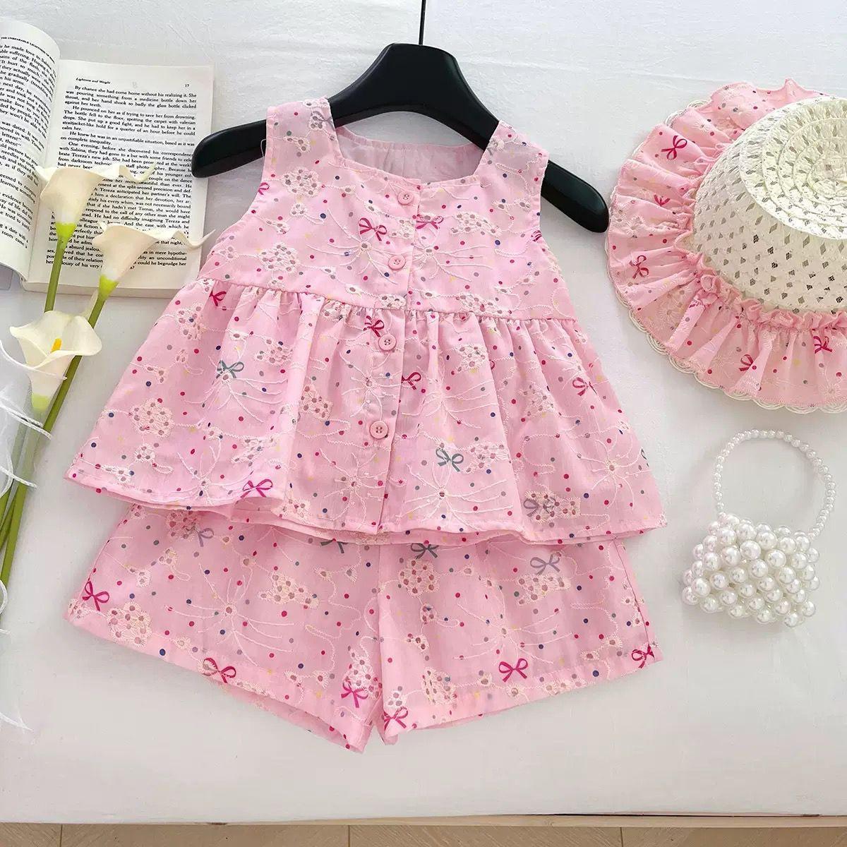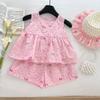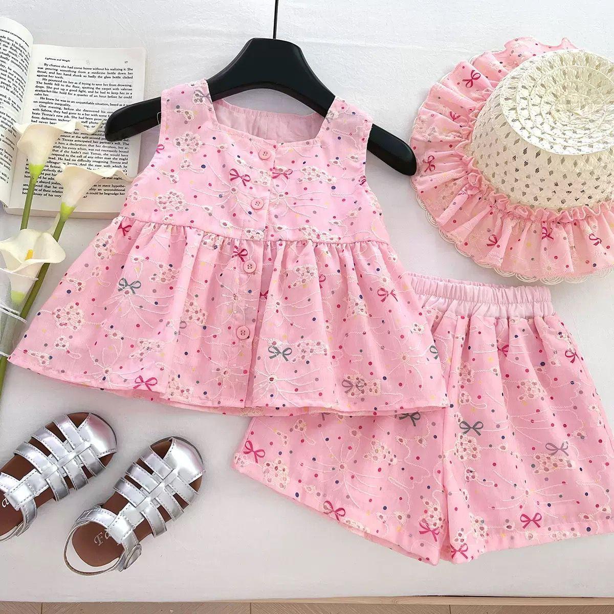 Traje de Verano para Niñas 2025 Nuevo Encaje Bordado Flor Top Chaleco Shorts Conjunto de Dos Piezas de Princesa Transfronterizo