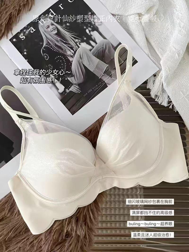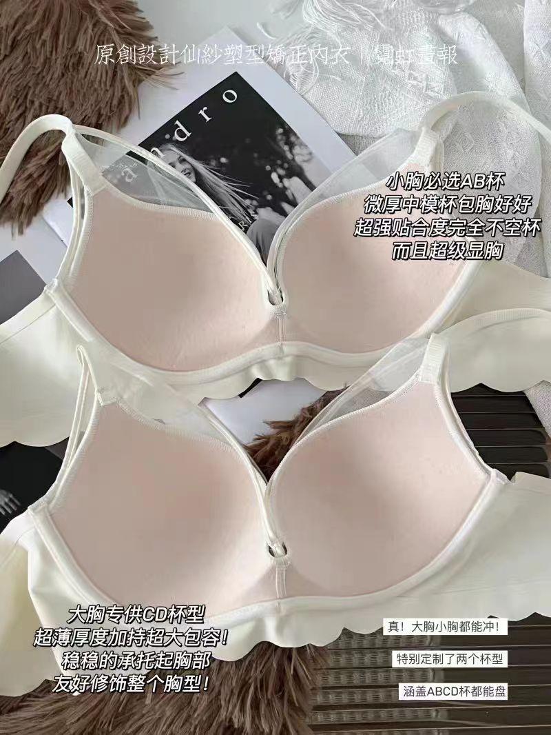 Ropa interior de mujer delgada para pecho grande, que recoge el pecho pequeño, anti-flacidez, para pecho pequeño, con forma, sujetador superior sin aro de acero