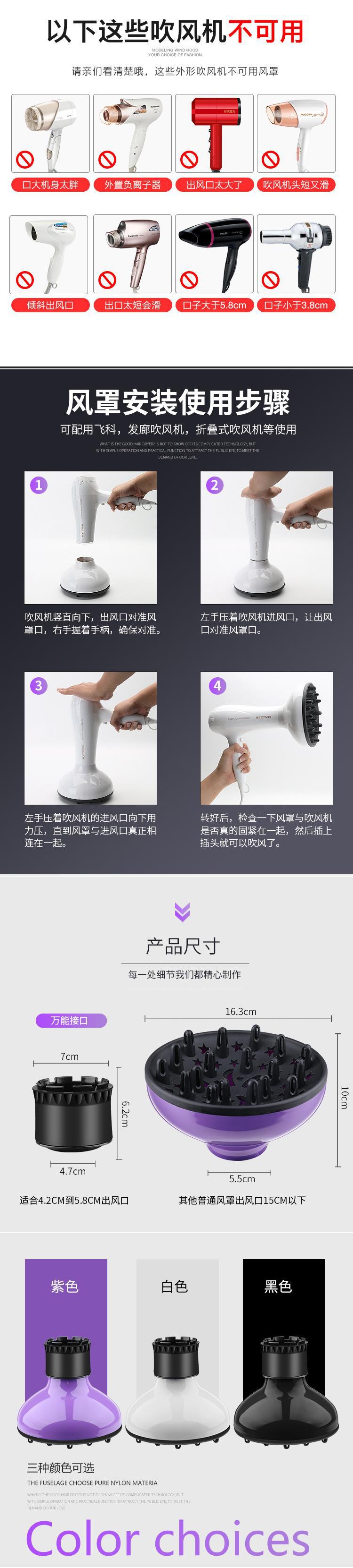 Interfaz Universal para Secador de Cabello de Calibre 4.2-6.2 con Protector de Viento Grande para Peinar y Secar, Volumen de Aire Ajustable