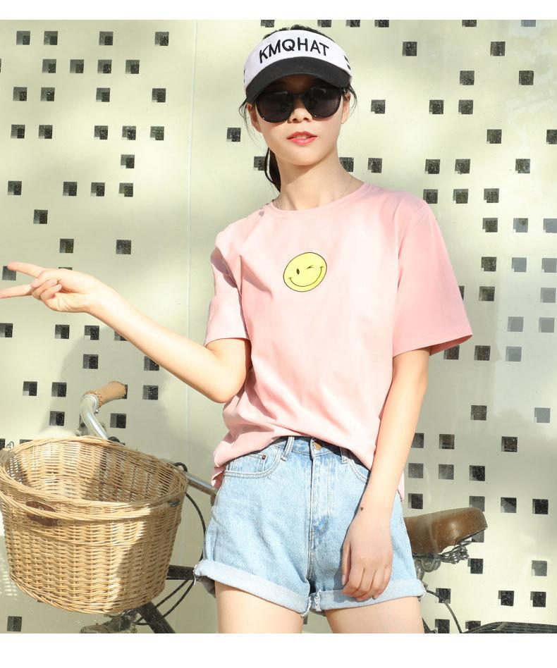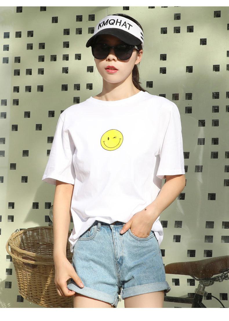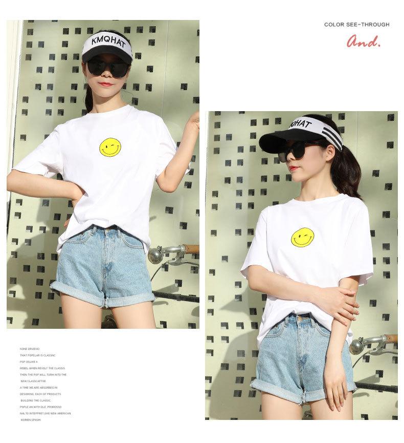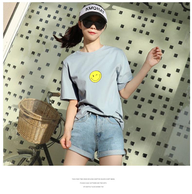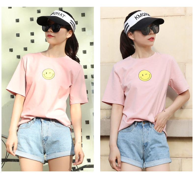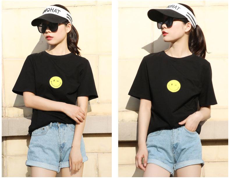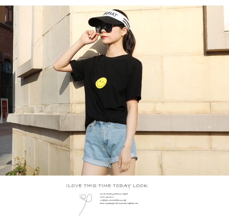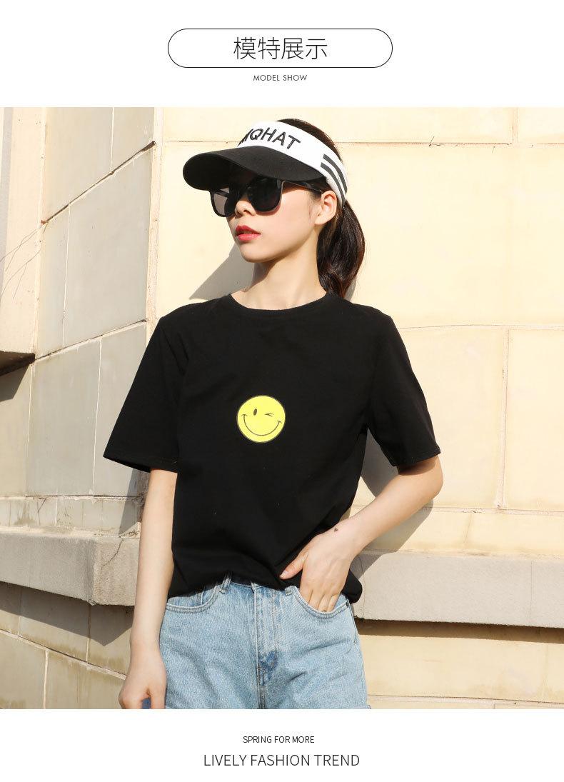 Verano 2020 nueva camiseta de algodón para mujer patrón de cara sonriente manga corta venta al por mayor de fábrica soporte una generación